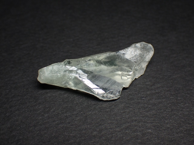 サイズ…41x11x10mm 重さ…4.9g 産地…Bahia,Brazil(ブラジル バイーア州) 通常アメジストを加熱すると黄色く変化しシトリンになりますが、特定の地域で産出したアメジストは加熱すると緑色に変化しプラシオライト(グリーンアメジスト)になります。