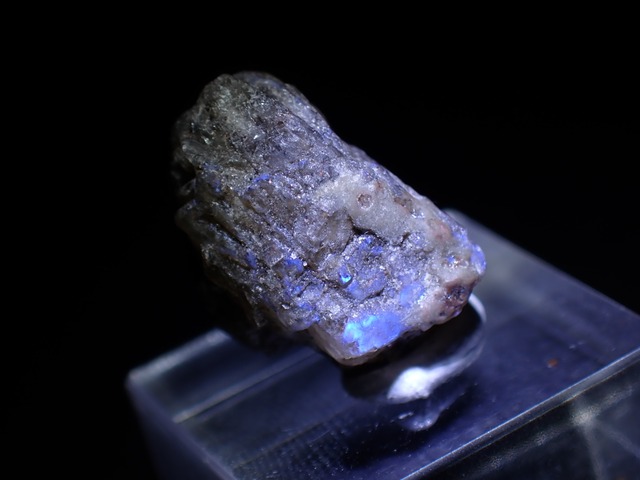 サイズ…15x10x10mm 重さ…1.9g 産地…朝鮮威鏡北道明川郡下零面在徳山産 こちらのサニディンはシラーがかなり弱くカメラで捉えることが出来ませんでした。 強力な光源で照らすことで僅かに確認が出来ます。