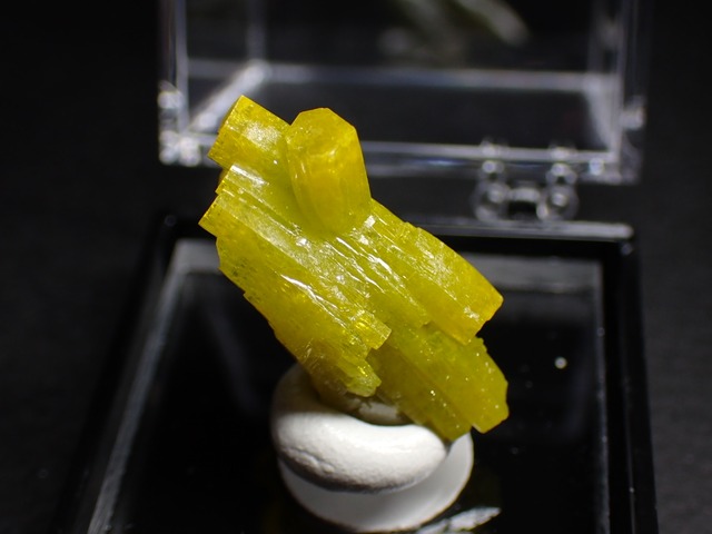 サイズ…22x17x11mm 重さ…6.1g 産地…9Level,Jersey Vein,Bunker Hill Mine,Shoshone Co.,Kellogg,Idaho,USA(アメリカ アイダホ州) ケースサイズ…35x35x35mm こちらはケースに入れてのお届けになります。 標本下部に取りきれなかったレジンがあります。予めご了承ください。 パイロモルファイト(緑鉛鉱)はアパタイト(燐灰石)グループの鉱物です。 鉛を含む鉱物なので見た目より重さを感じます。