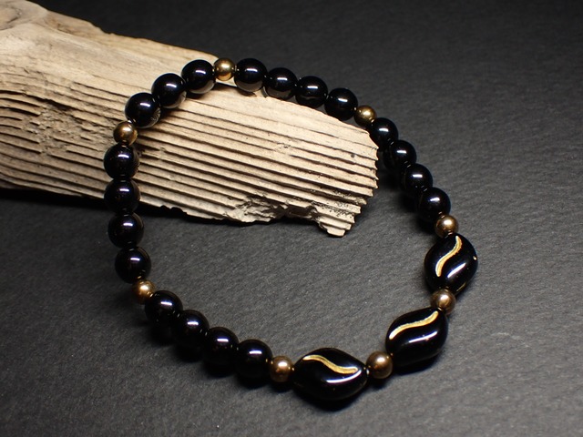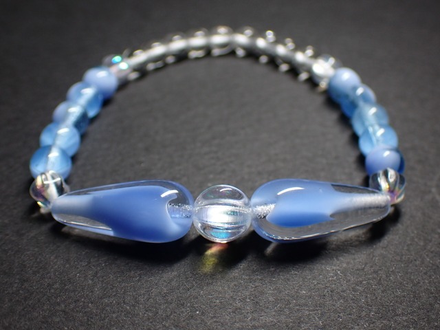 店主が作っているブレスレットに使われている《チェコビーズ》って何だろう?と調べる内にその奥深さと面白さに目覚めた店主の妻が 敢えて天然石を一切使わずガラスビーズのみでブレスレットを作ってみよう!と作り始めたブレスレットです。 お気に召していただけたら幸いです。 サイズ(内径)…約15.5cm (おおよその目安となります) 使用ゴム糸…オペロンゴム糸約0.3mm4重通し 素材…ガラスビーズ 素材原産国…チェコ共和国 ◆チェコ製ビーズは多少の個体差が生じやすくなっており、ご使用には差し支えのない程度の小さなへこみ、ビーズ内の気泡や色ムラがある場合があります。 ◆金属製パーツは使用しておりませんが、表面がコーティングされている場合、何かしらのアレルギー反応が出る可能性があります。 メッキ加工、コーティングがお肌に合わない可能性がある方は御購入をお控え下さい。 ◆表面がコーティングされているビーズは、摩擦や経年劣化等により色落ちが生じる場合がございますのでご注意ください。 ◆伸縮性のあるオペロンゴムを使用しております。細い繊維状のゴムの束が1本のゴムとなっているので、 万が一1本が切れた場合も、ビーズの飛び散りを防ぎます。強度を上げるため2本重ね2周の4本重ねで作成しております。 手が通る程度に優しく伸ばして着脱していただくと劣化しにくく長くご着用いただけます。 強く伸ばしすぎると切れてしまう可能性がございますのでご注意下さい。 ◆サイズの変更に関してはイメージが変わる恐れがあるため承っておりません。何卒ご容赦ください。