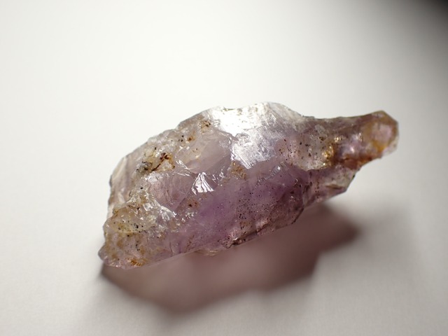 サイズ…52x19x17mm 重さ…18.7g 産地…Chibuku Mine,Chiredzi mining district,Masvingo,Zimbabwe(ジンバブエ チブク鉱山) シャンガーンアメジストとは近年新産地として注目されているジンバブエ チブク鉱山産のアメジストになり、その名前はシャンガーン族という現地の民族名に由来されています。 多くはスモーキーアメジストでエレスチャルやセプターのような形状をしており、レピドクロサイトやゲーサイト等が内包されていることが多い観察のしがいのあるアメジストとなっております。