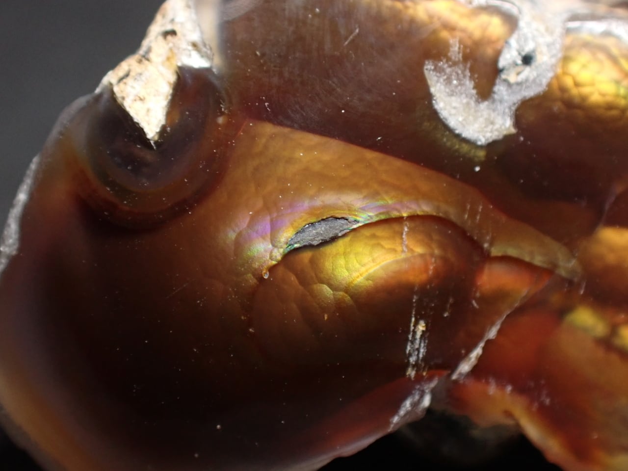 ファイアーアゲート(瑪瑙)は虹色に光るイリデッセンスが特徴です。