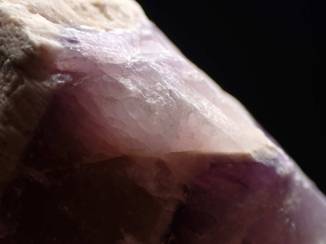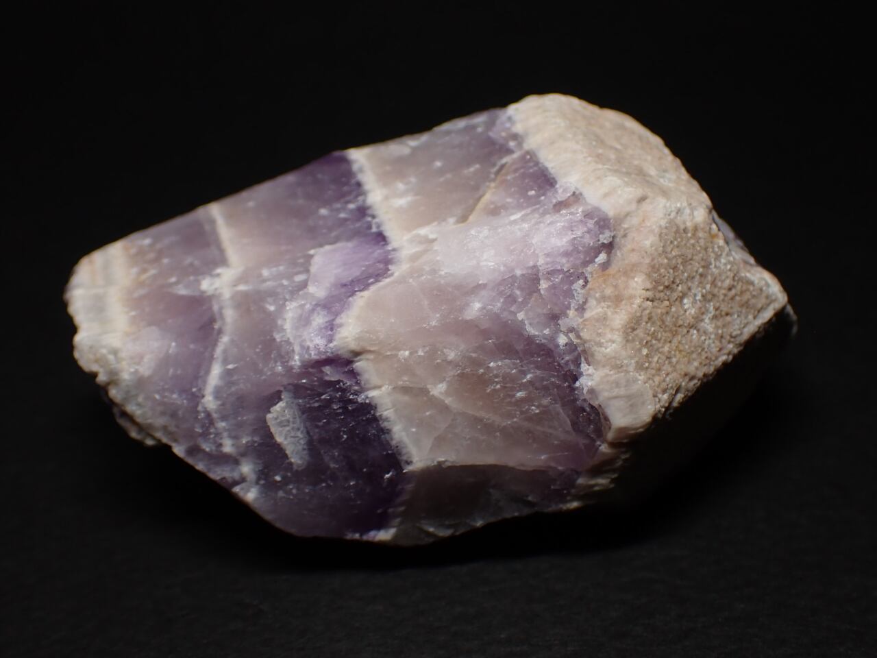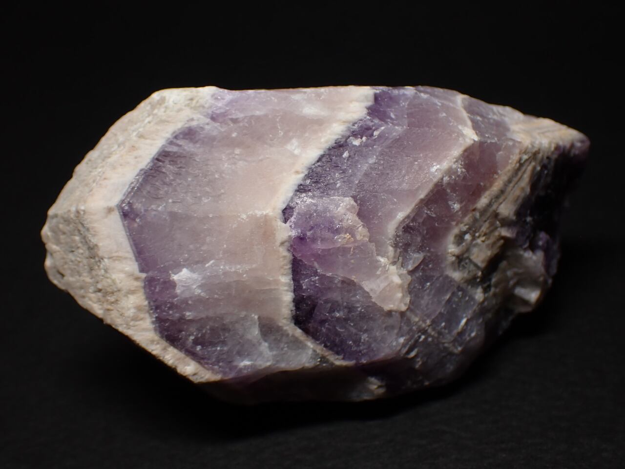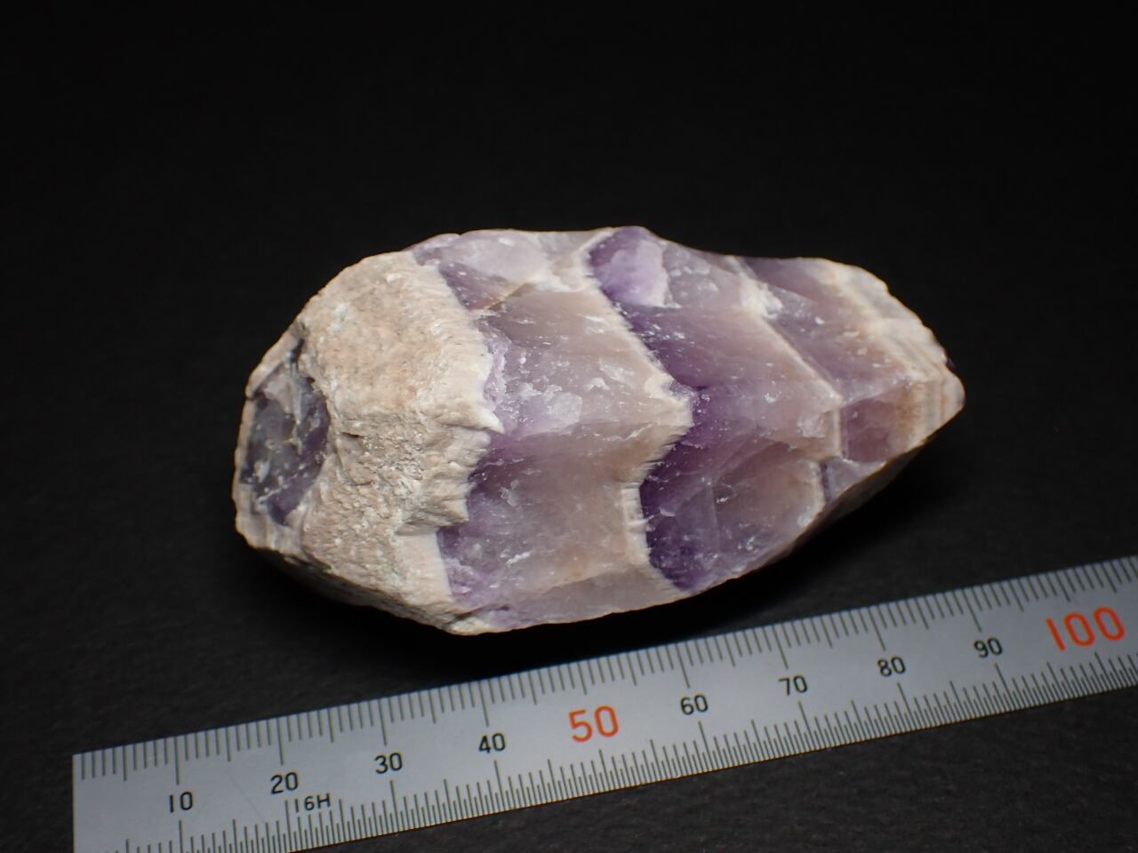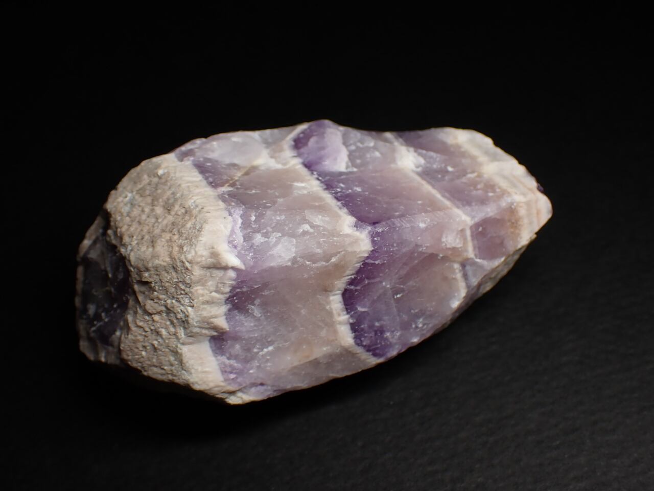 シェブロンアメジストはアメジストと石英からなる層状の模様が特徴的です。