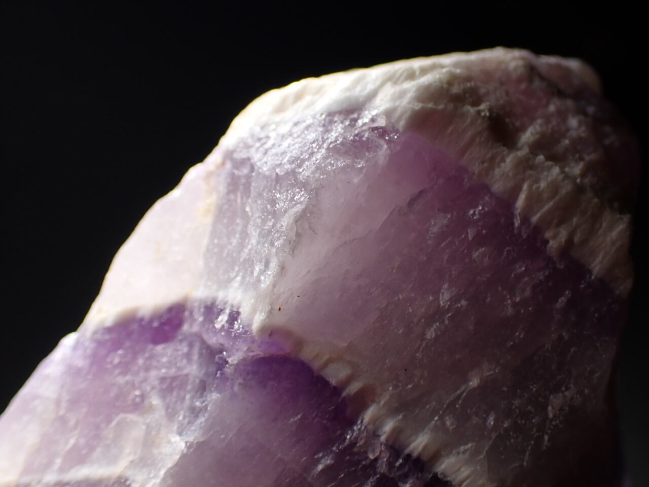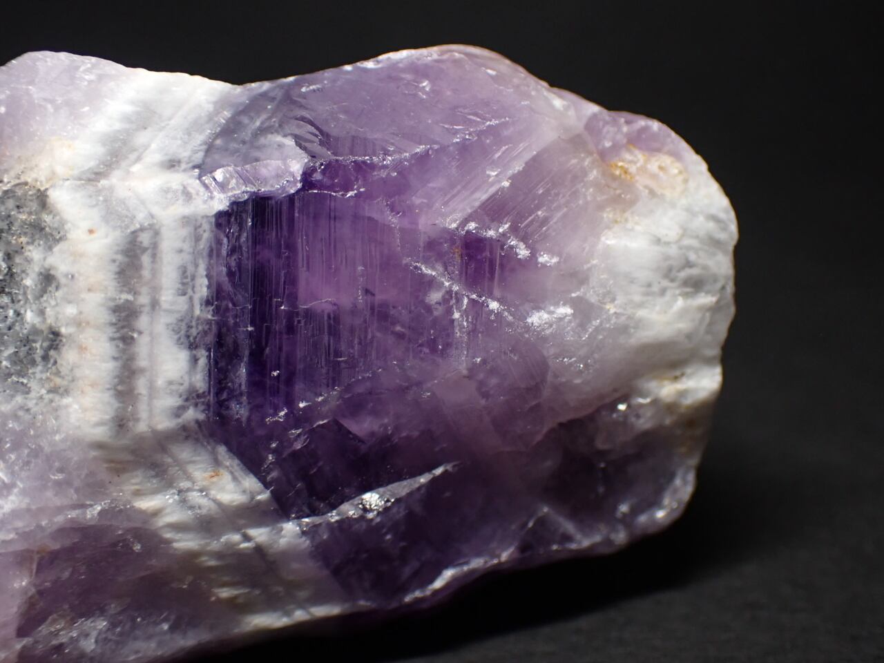 シェブロンアメジストはアメジストと石英からなる層状の模様が特徴的です。
