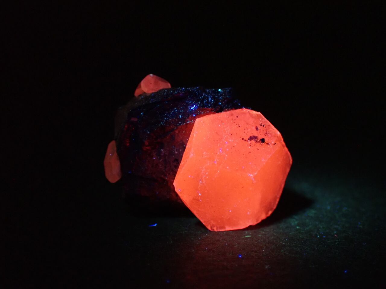 方解石(Calcite)の蛍光の撮影にハイパーUVライト(365nm)を使用しております。