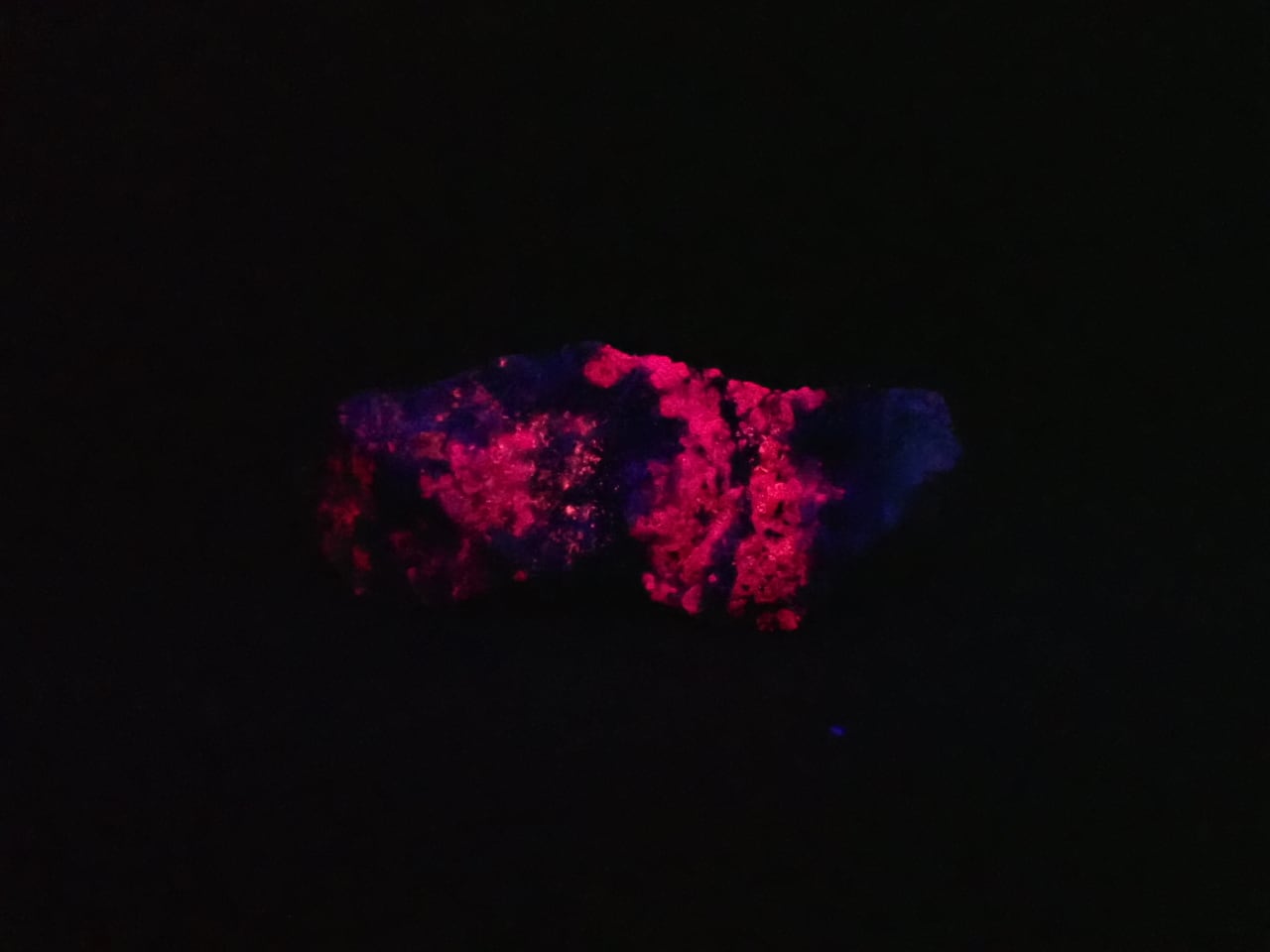 一般的な長波紫外線では蛍光の確認が難しく短波紫外線ライトですと強く赤蛍光を示します。