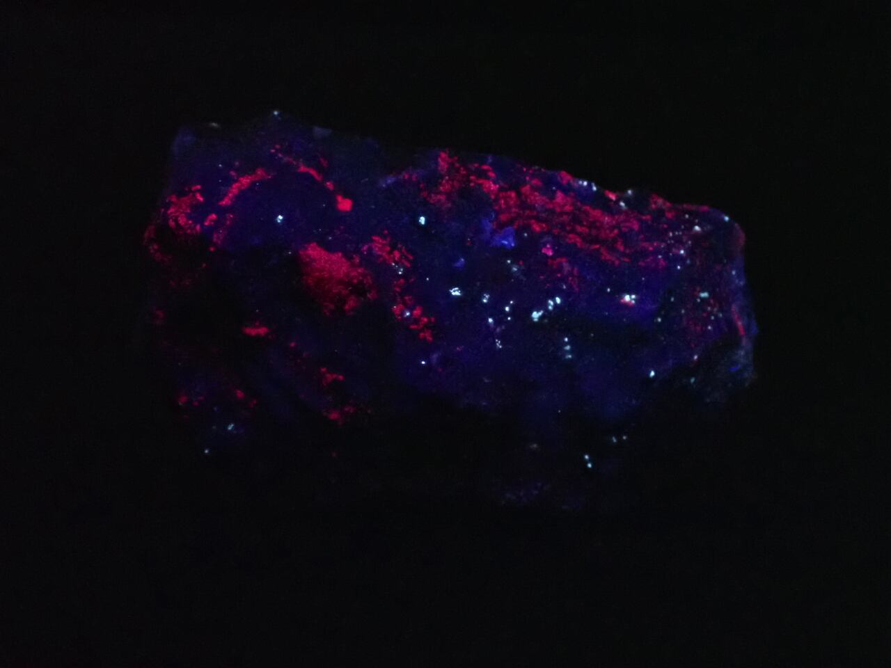 一般的な長波紫外線では蛍光の確認が難しく短波紫外線ライトですと強く赤蛍光を示します。