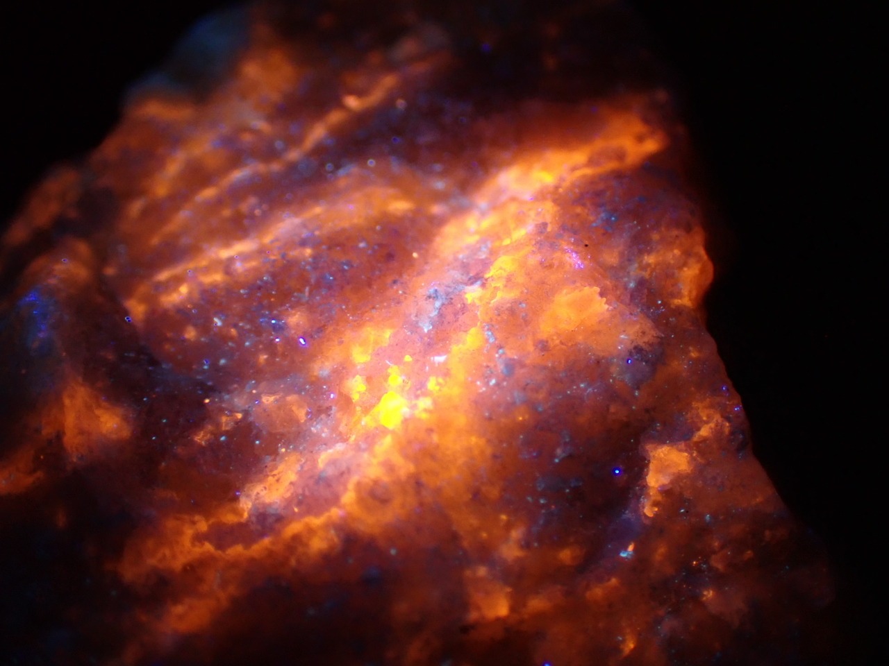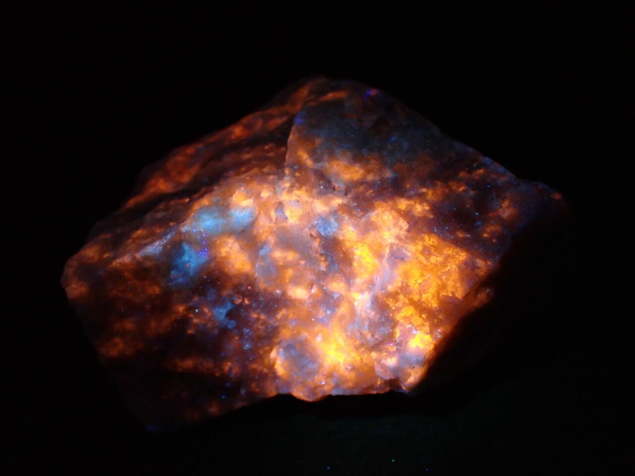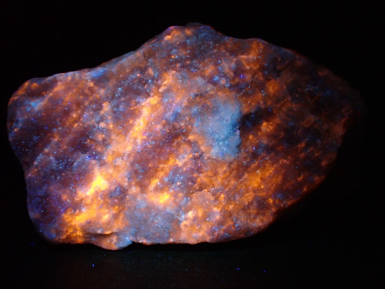 こちらのハックマナイト(ハックマン石)は強い蛍光と一部色の変化が確認できます。