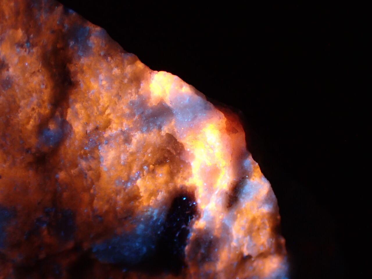 こちらのハックマナイト(ハックマン石)は強い蛍光と一部色の変化が確認できます。