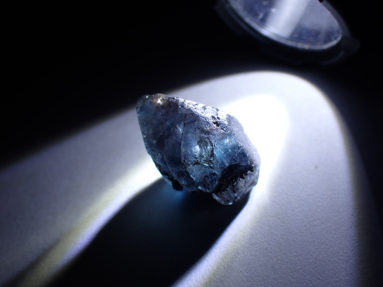 天然で青色の物もごく稀に存在するようですが基本的に加熱処理が施されて青くなっており、こちらの原石も加熱処理されていると思われます。
