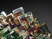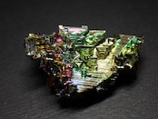 結晶の形は骸晶になっており、表面は酸化膜により虹色に輝きます。