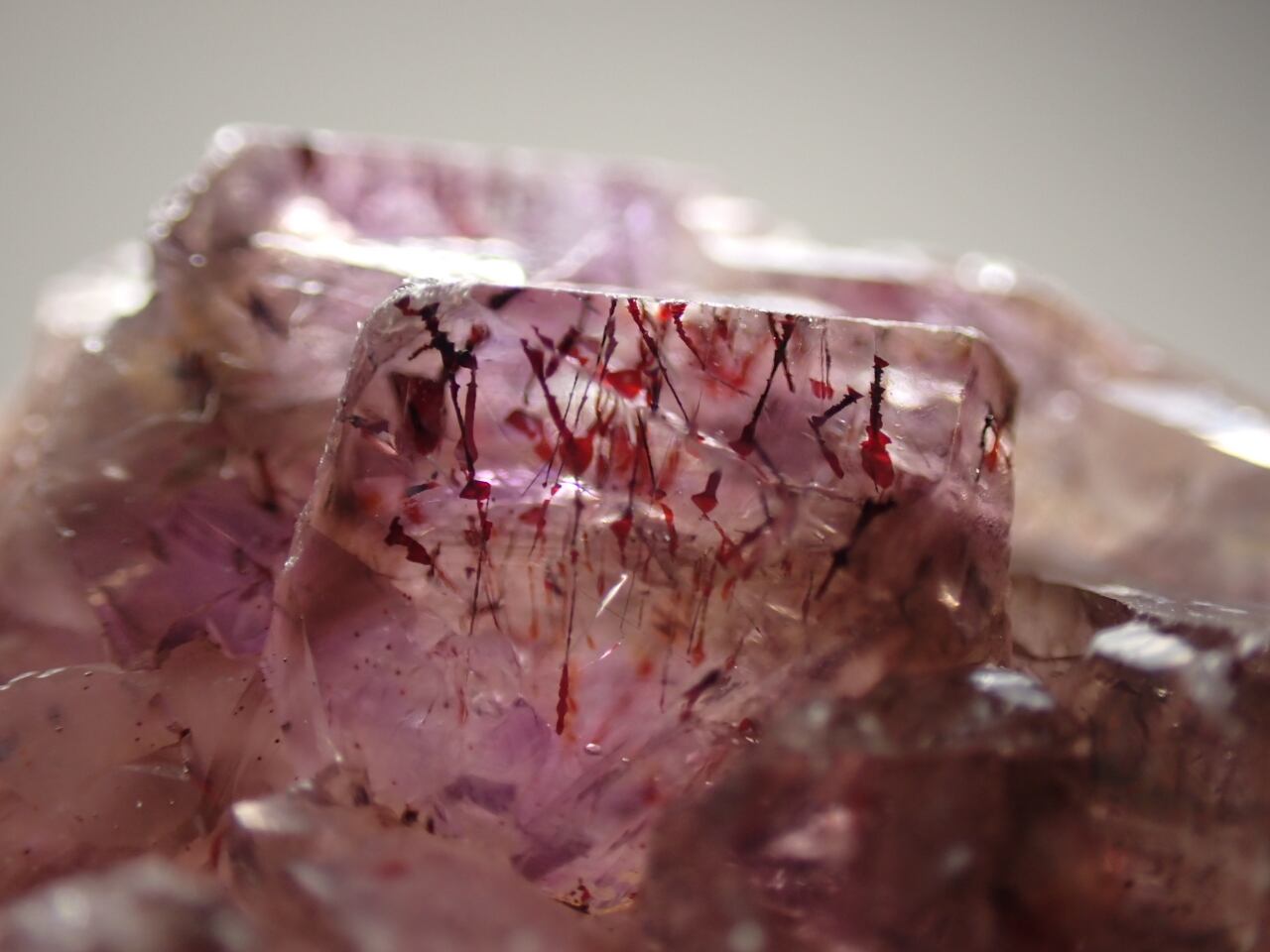 多くはスモーキーアメジストでエレスチャルやセプターのような形状をしており、レピドクロサイトやゲーサイト等が内包されていることが多い観察のしがいのあるアメジストとなっております。