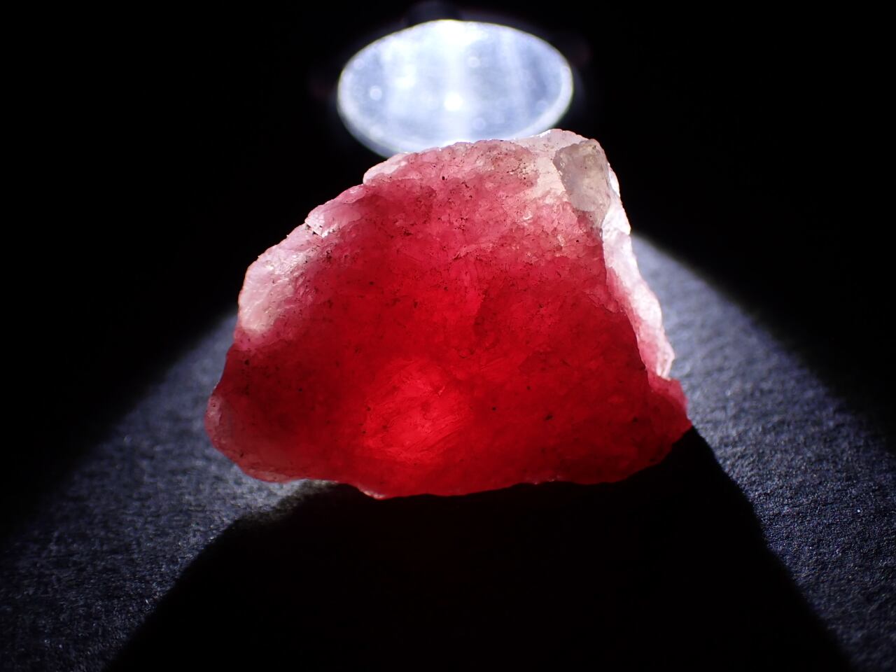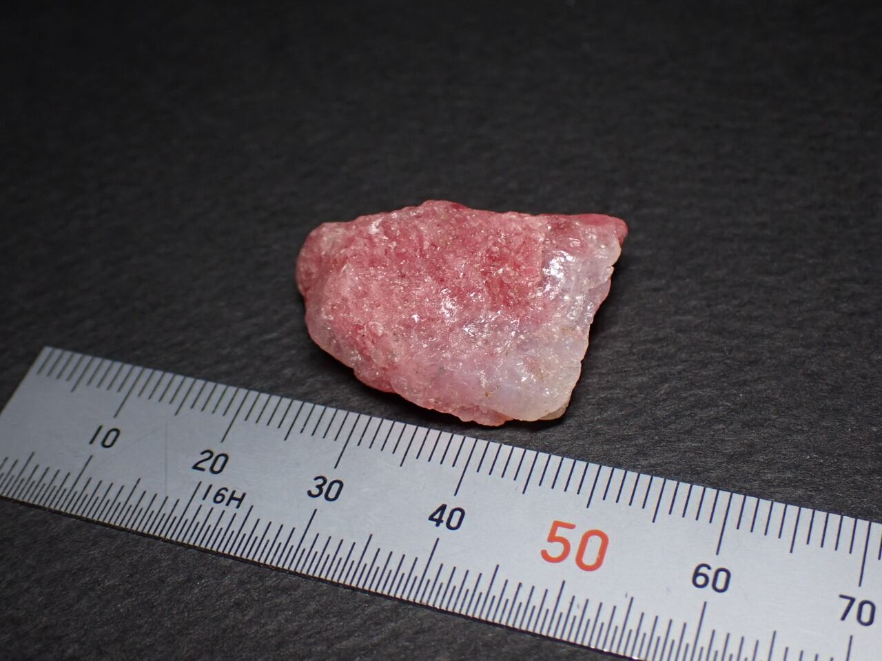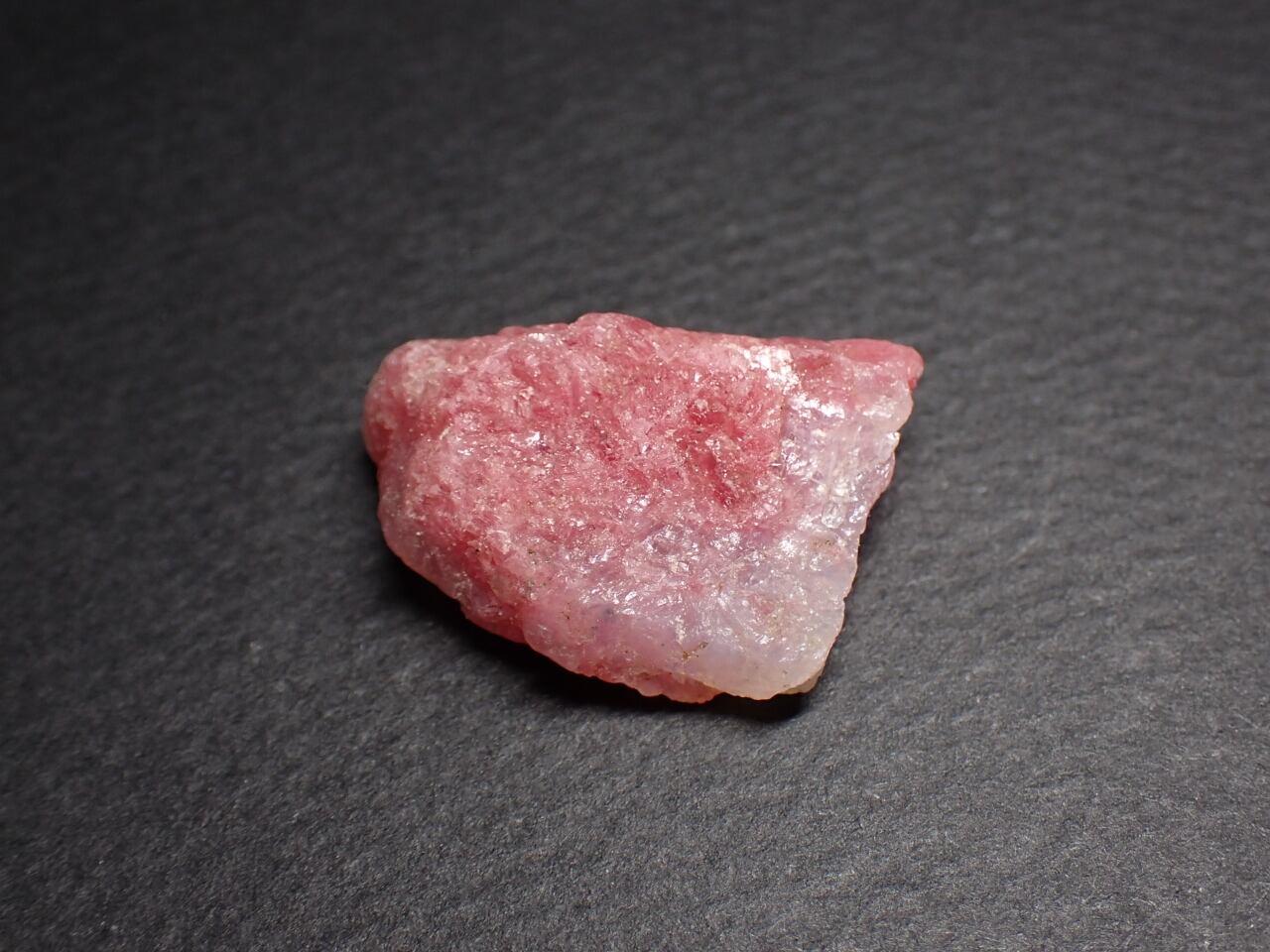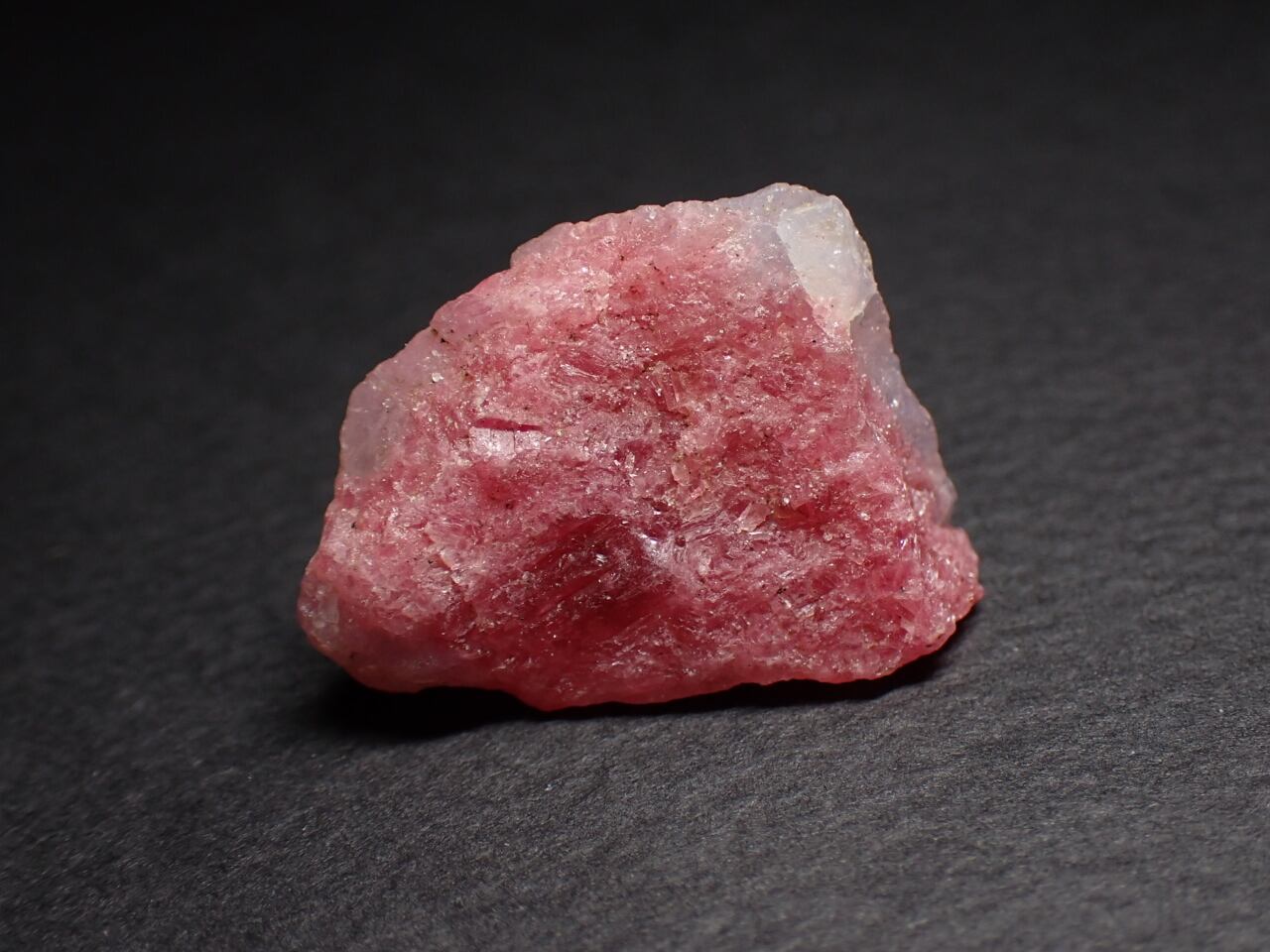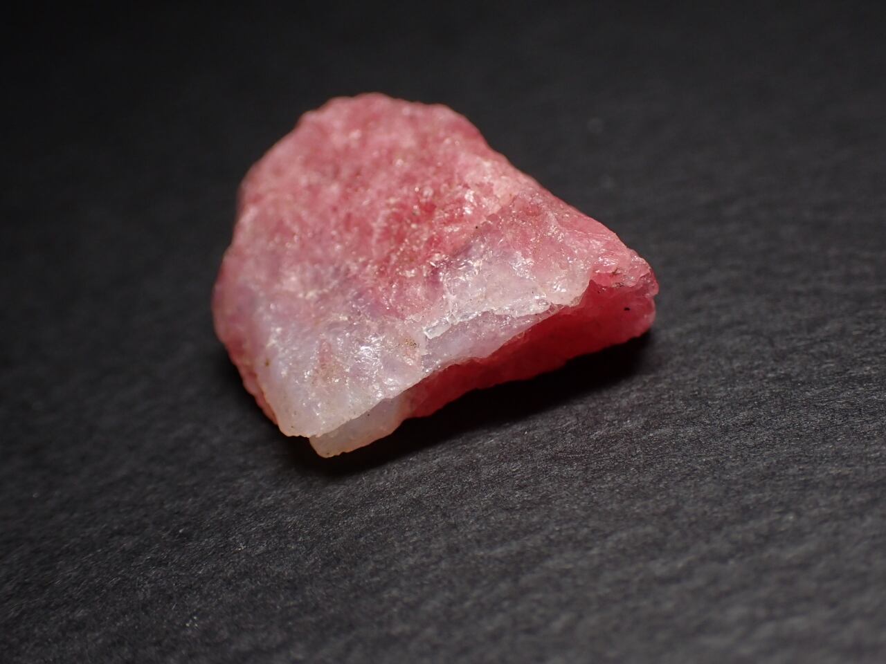 水晶の中にピンク色のロードナイト(薔薇輝石)が内包されております。
