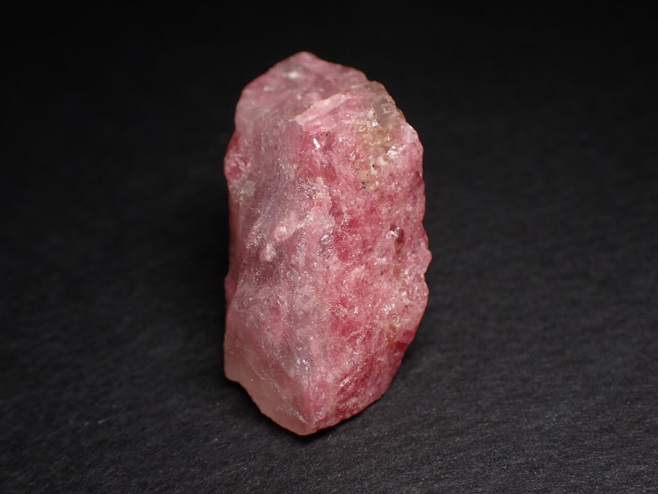 水晶の中にピンク色のロードナイト(薔薇輝石)と酸化したマンガンと思われる黒い成分が内包されております。