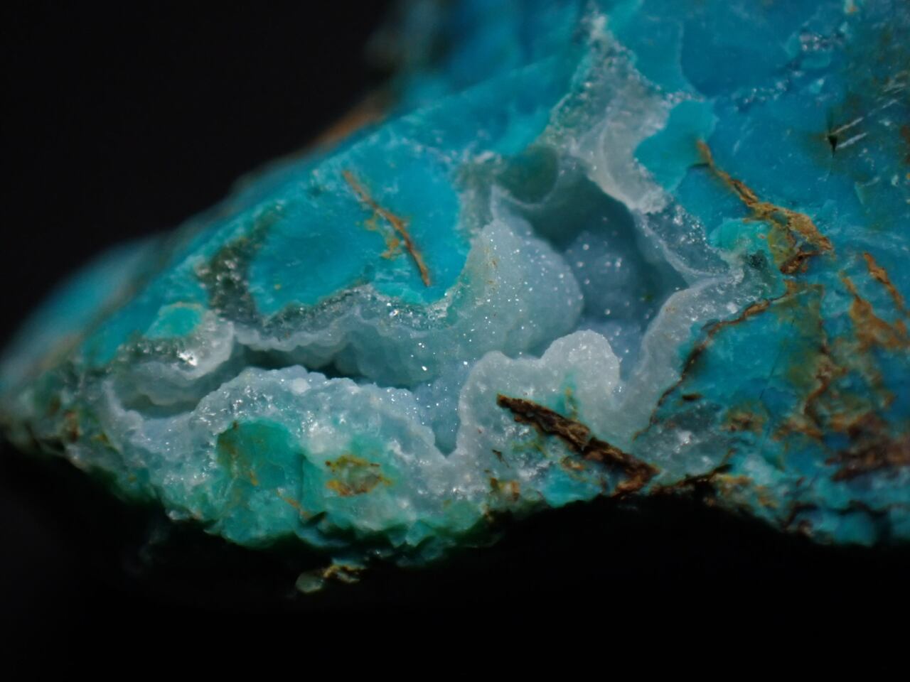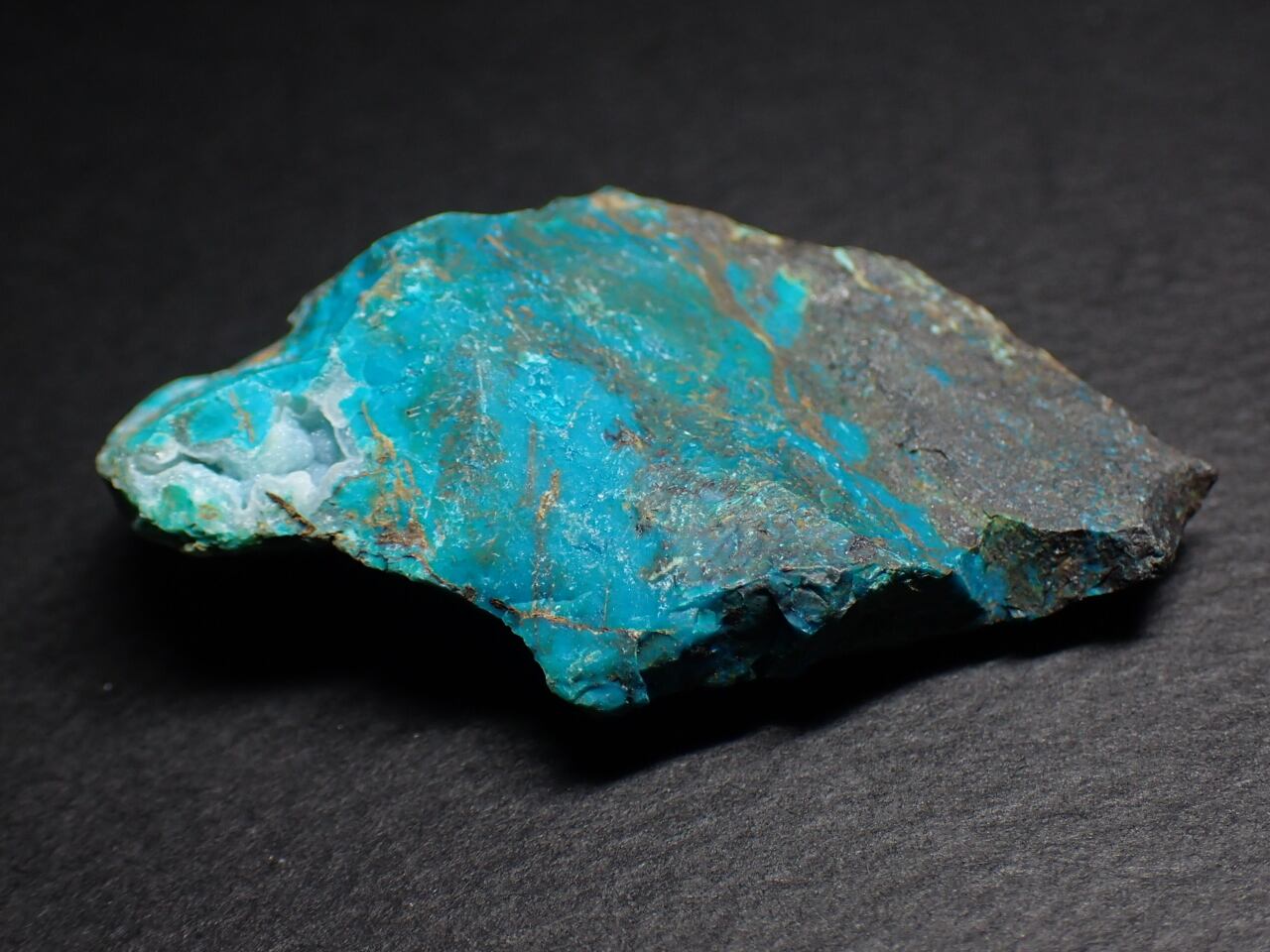 クリソコラ(珪孔雀石)は銅を含む鉱物が風化することで生成します。