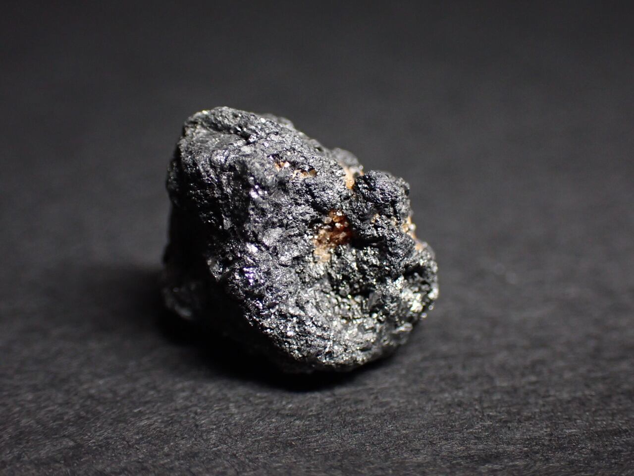 黒っぽいダイヤモンド(金剛石)上にガーネット(柘榴石)が確認できる標本です。