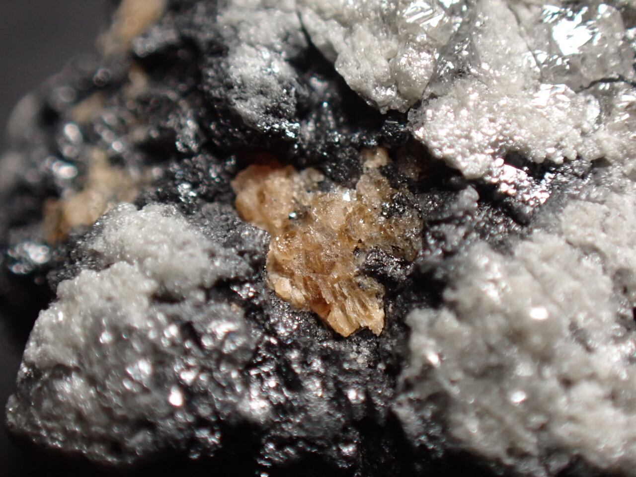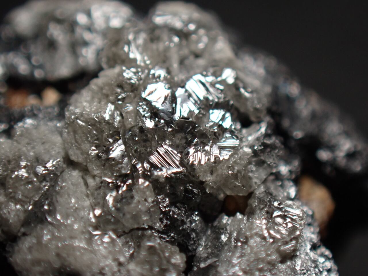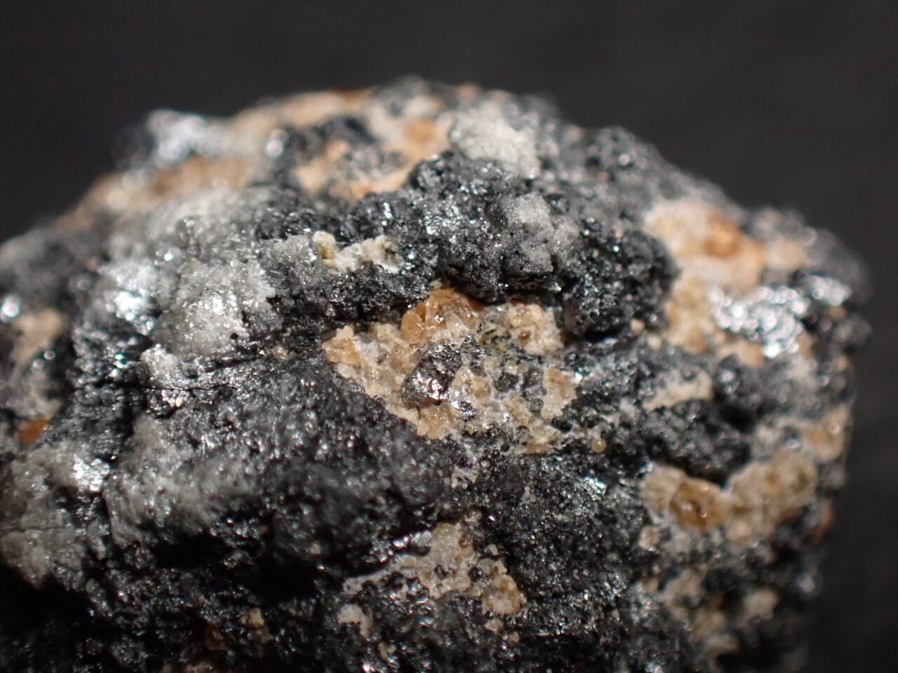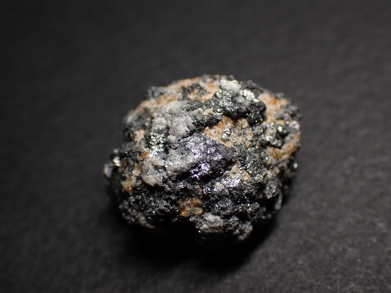 黒っぽいダイヤモンド(金剛石)上にガーネット(柘榴石)が確認できる標本です。