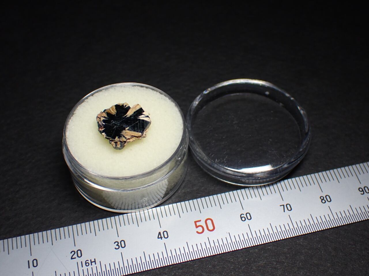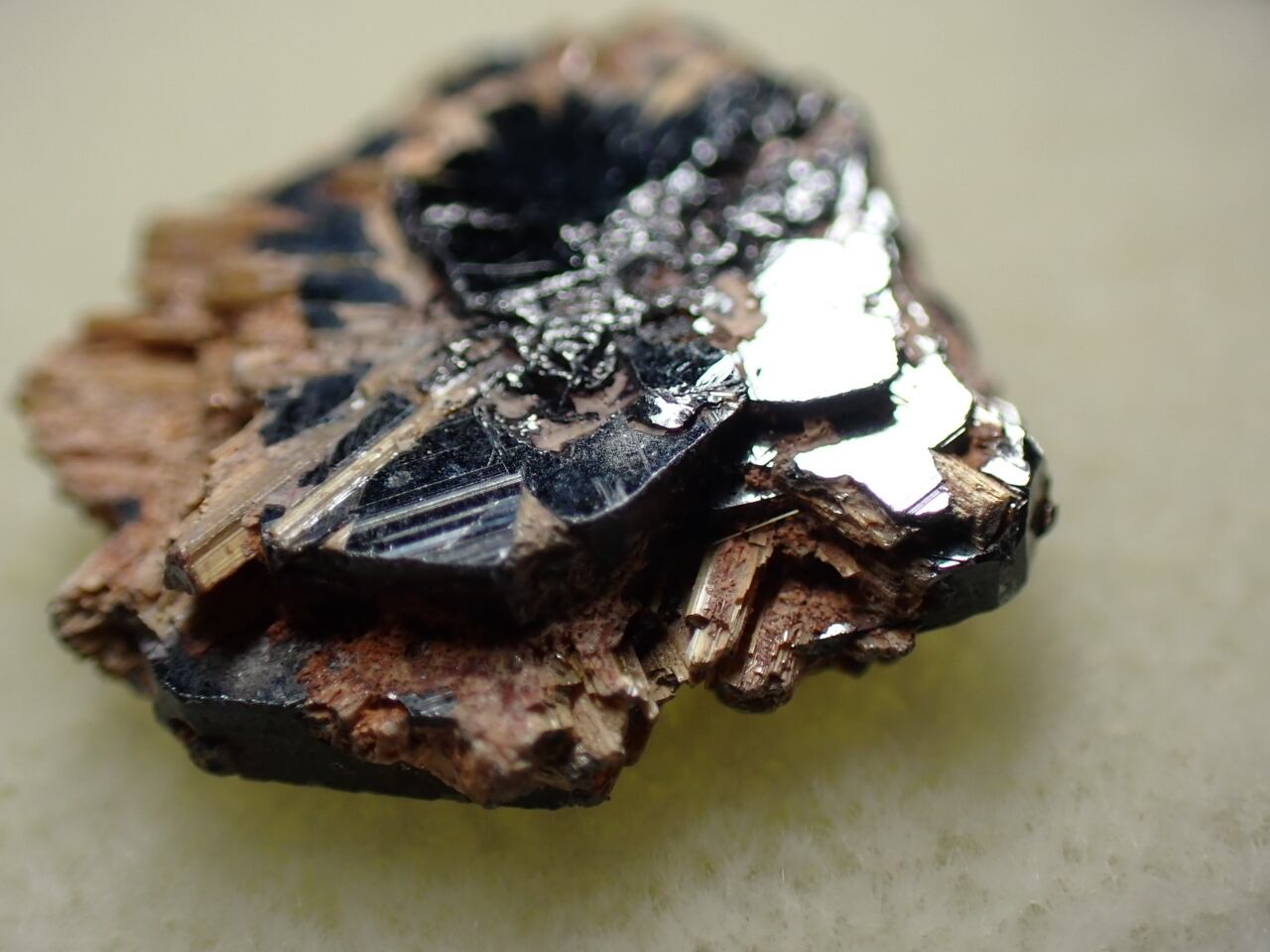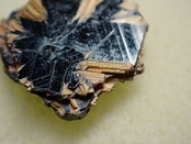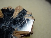 ヘマタイト(赤鉄鉱)を母岩としたルチル(金紅石)です。