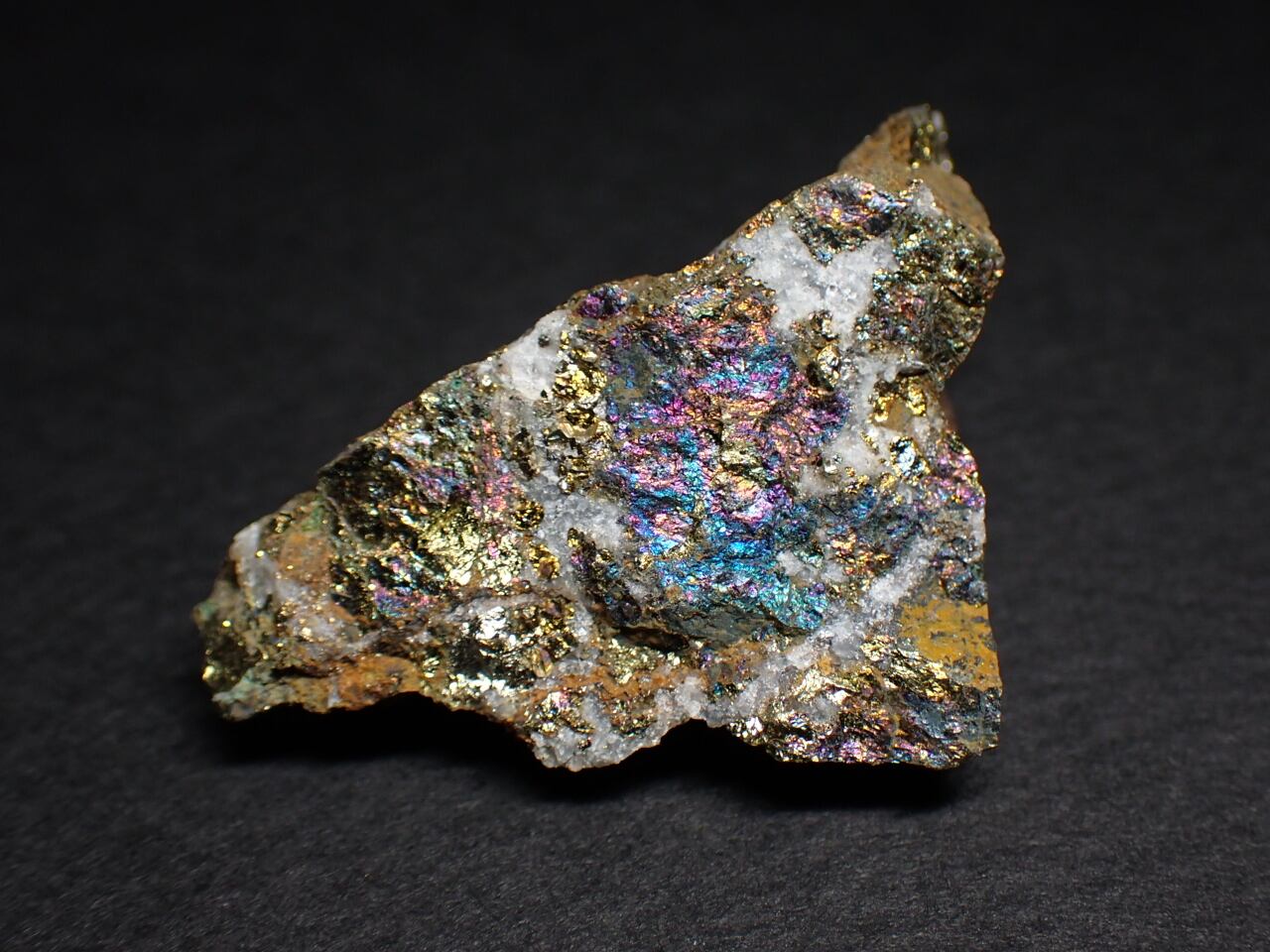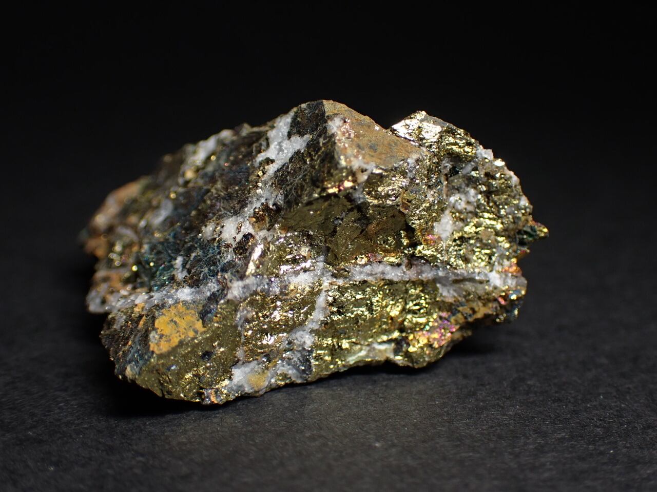 チャルコパイライト(黄銅鉱)は銅と鉄、硫黄からなる鉱物です。