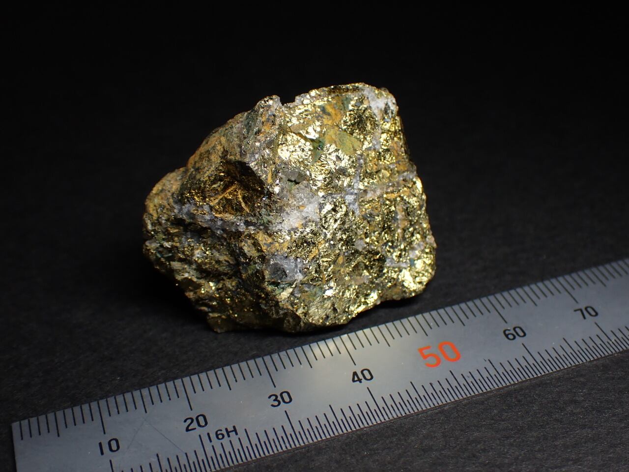 チャルコパイライト(黄銅鉱)は銅と鉄、硫黄からなる鉱物です。