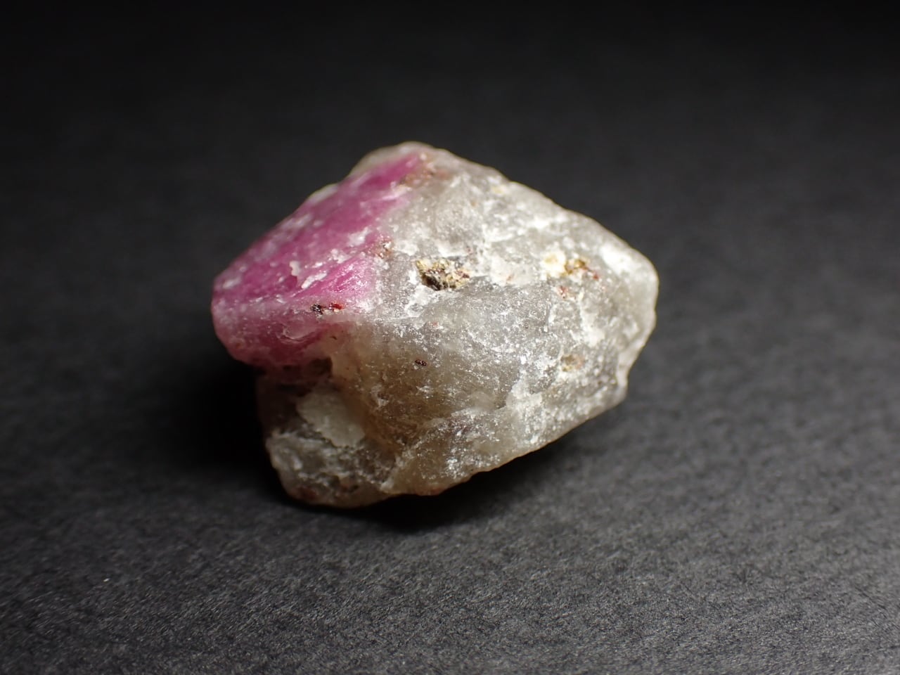 コランダム(corundum)は酸化アルミニウムからなる鉱物ですが、微量にアルミニウムがクロムに置き換わることにより赤色を示すものをルビーと呼び、それ以外の色がサファイアと呼ばれています。クロムの量が極微量で薄赤~ピンク色のものはピンクサファイアとなります。