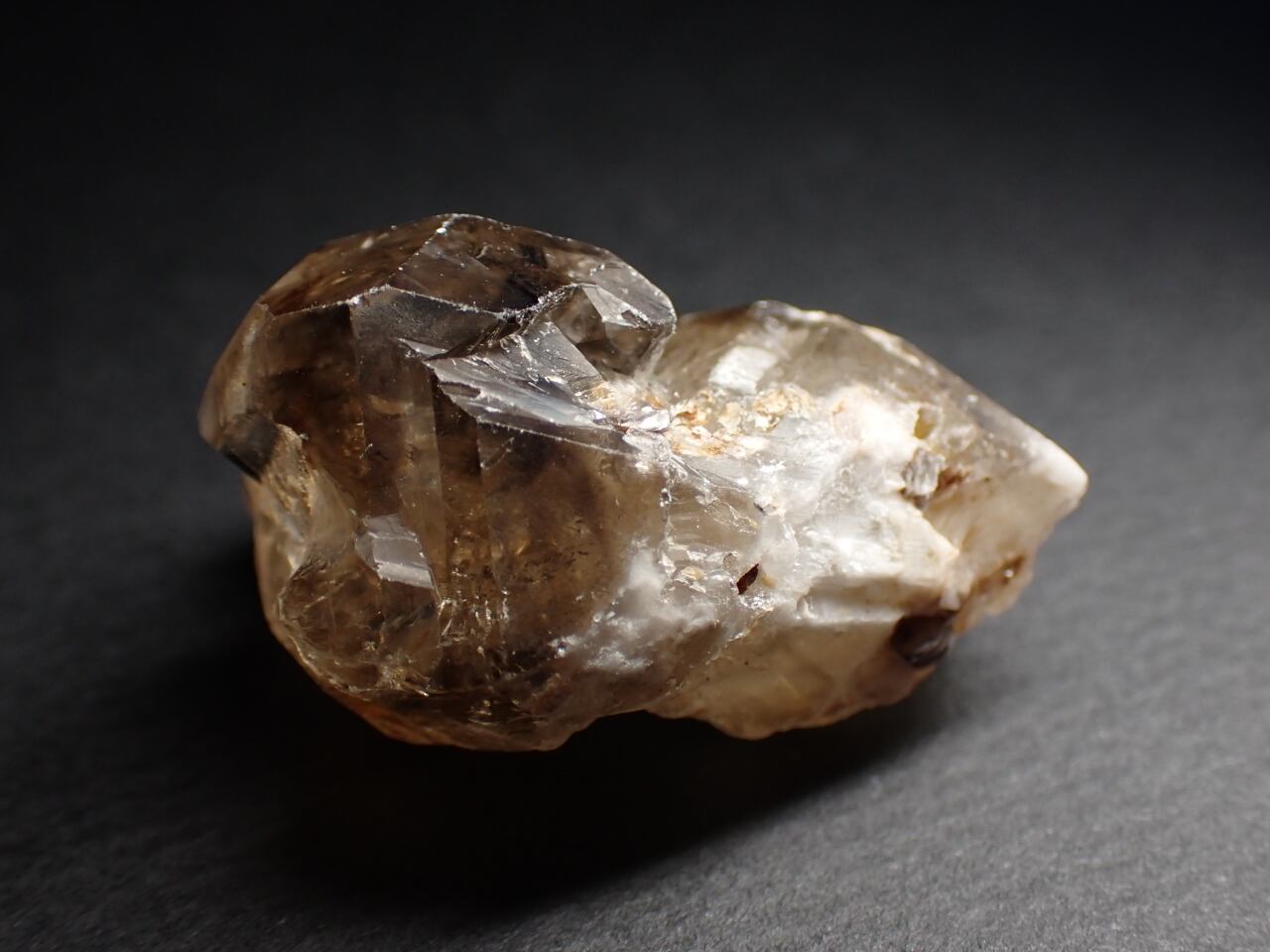 こちらは成長過程で天然の放射線を受けることによりスモーキークォーツ(煙水晶)になりました。