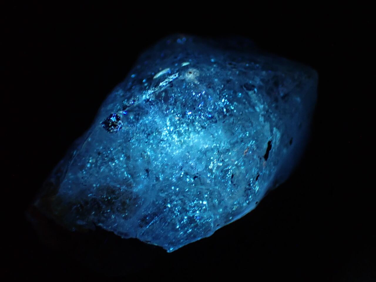 内包物がハイパーUVライト(365nm)で青白く蛍光します。