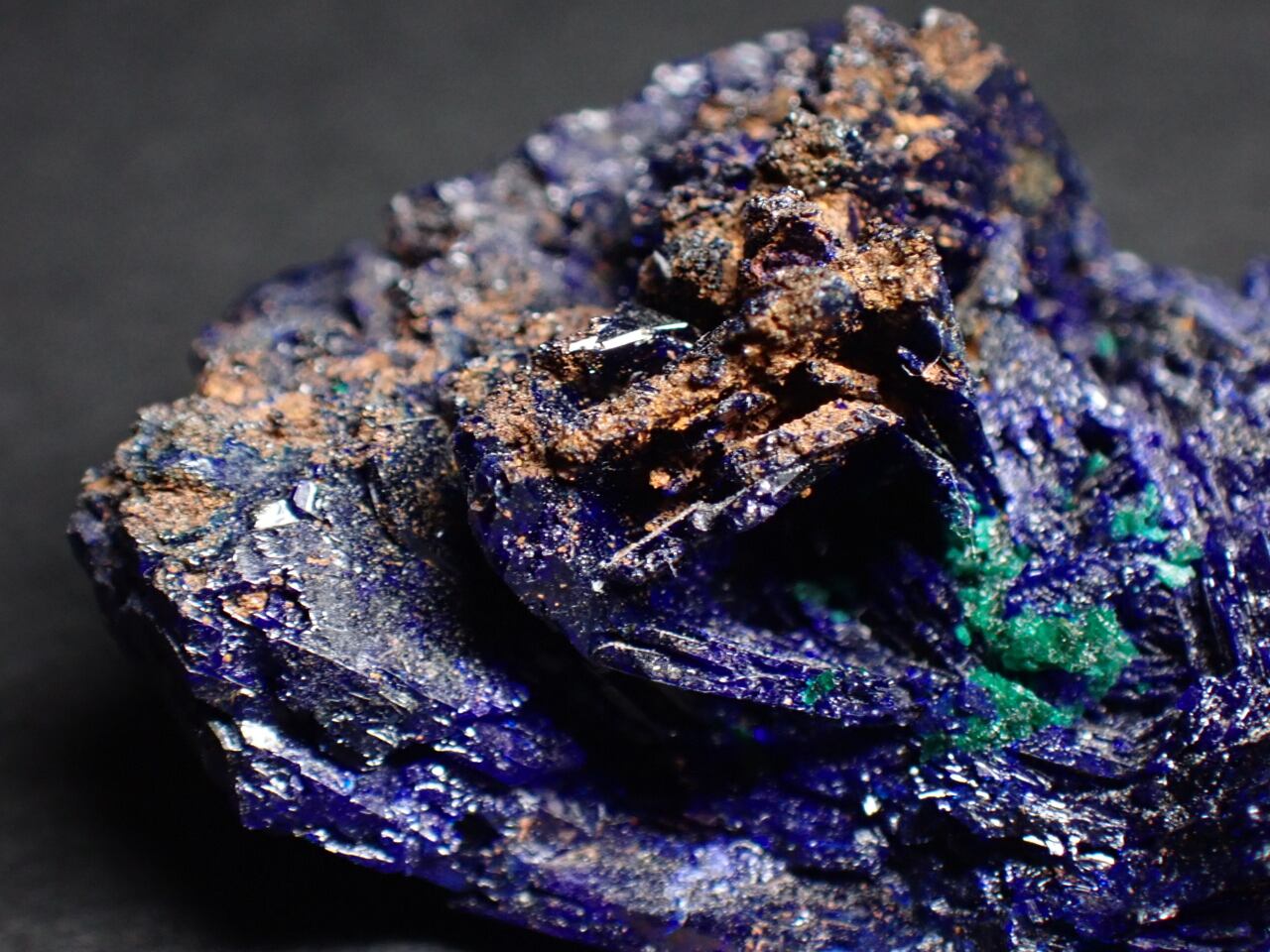 アズライト(藍銅鉱)は古来より青色の顔料(着色に用いる粉末で水や油に不溶のものの総称)として利用されております。