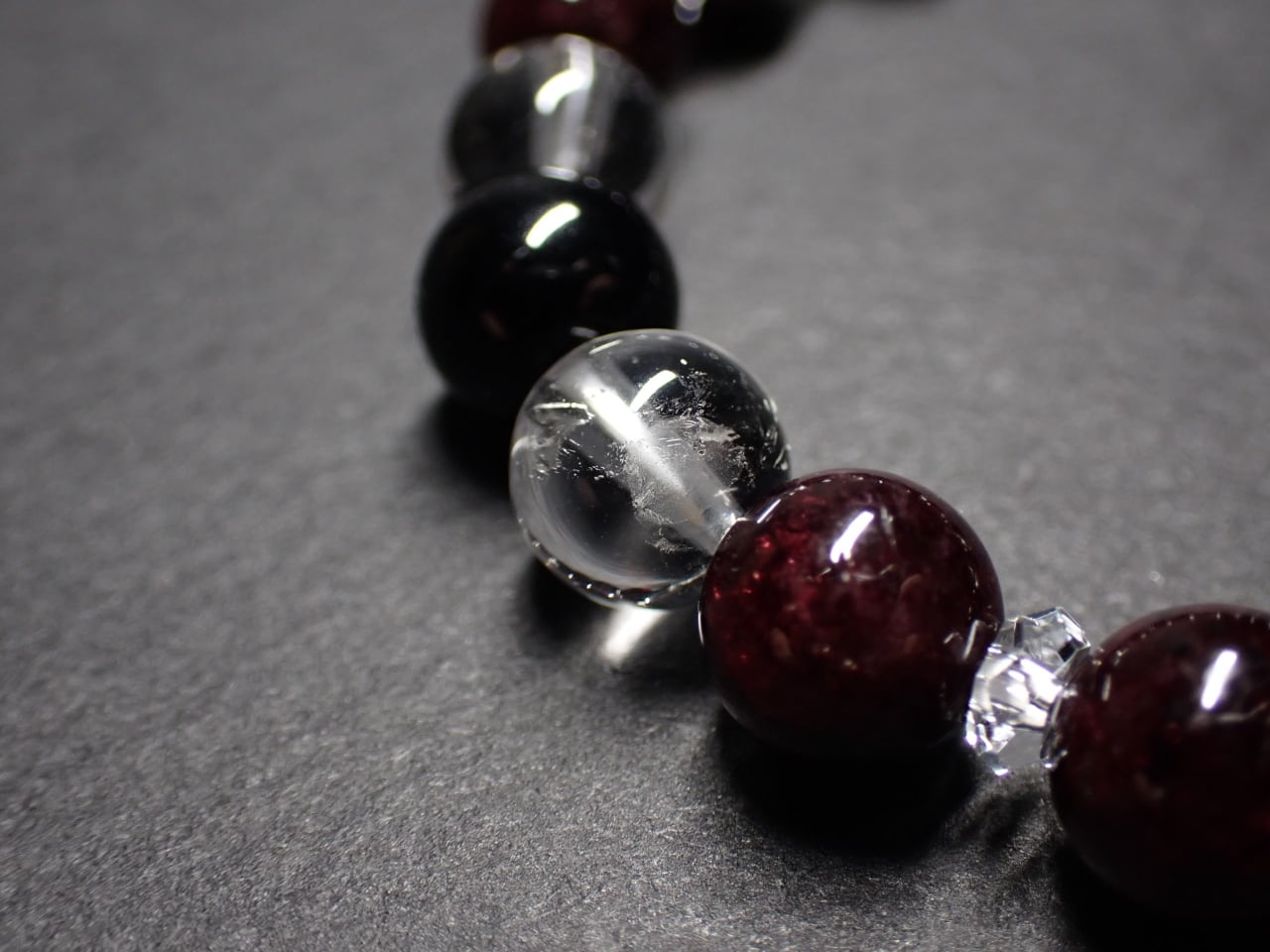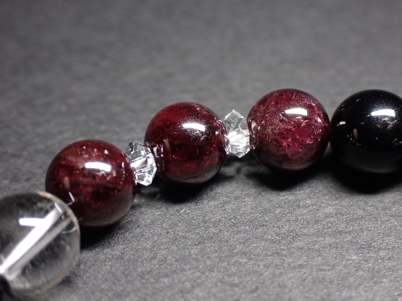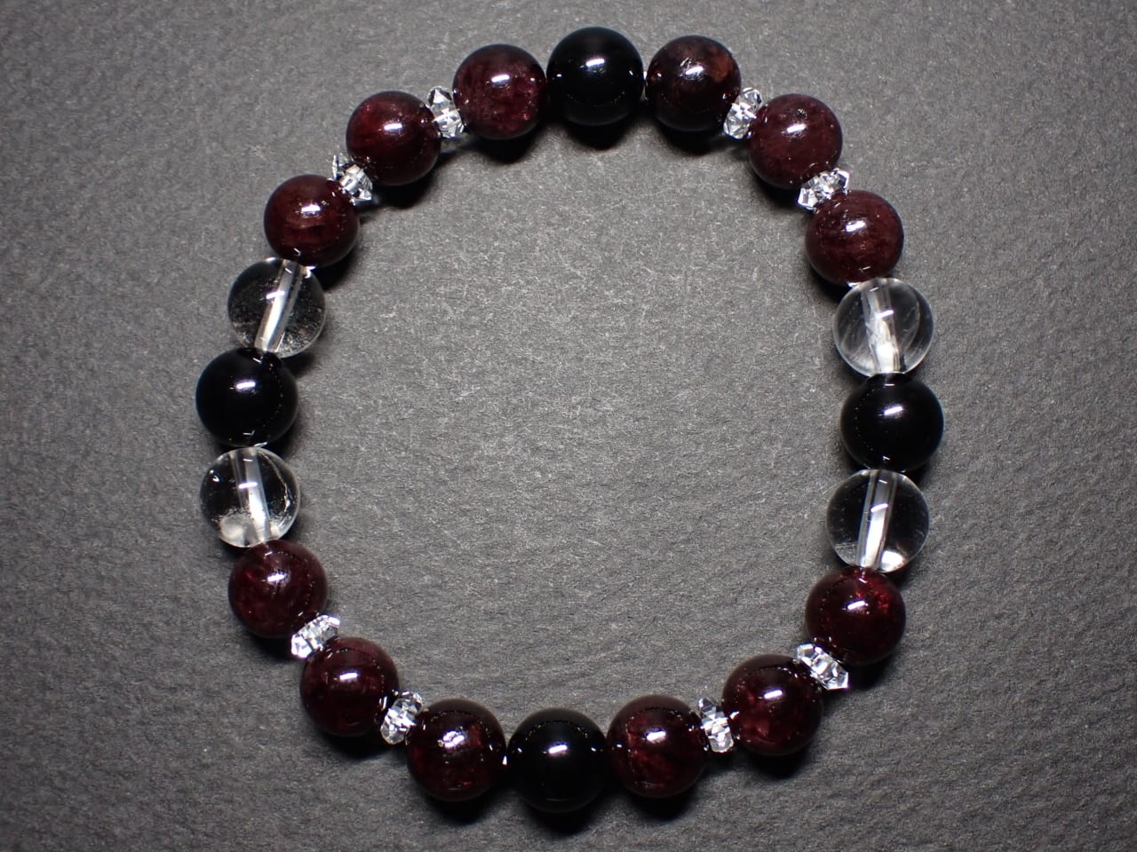 使用天然石…ブラックスピネル8mmx4個 ガーネット8mmx12個 水晶8mmx4個 カット水晶x8個