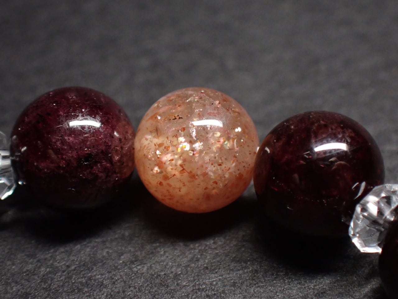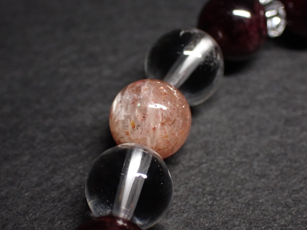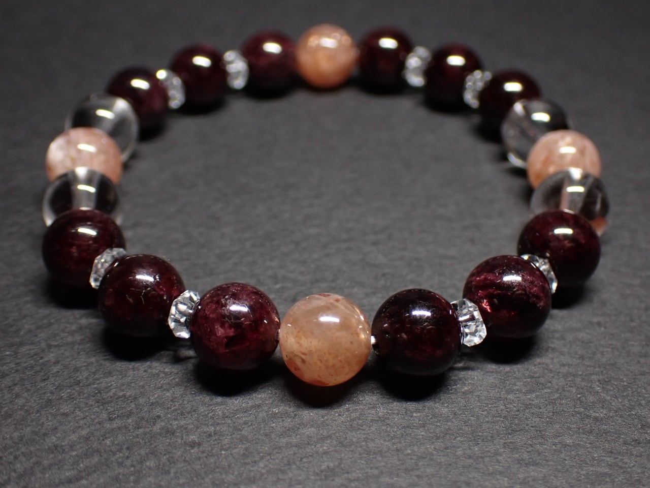 使用天然石…サンストーン8mmx4個 ガーネット8mmx12個 水晶8mmx4個 カット水晶x8個
