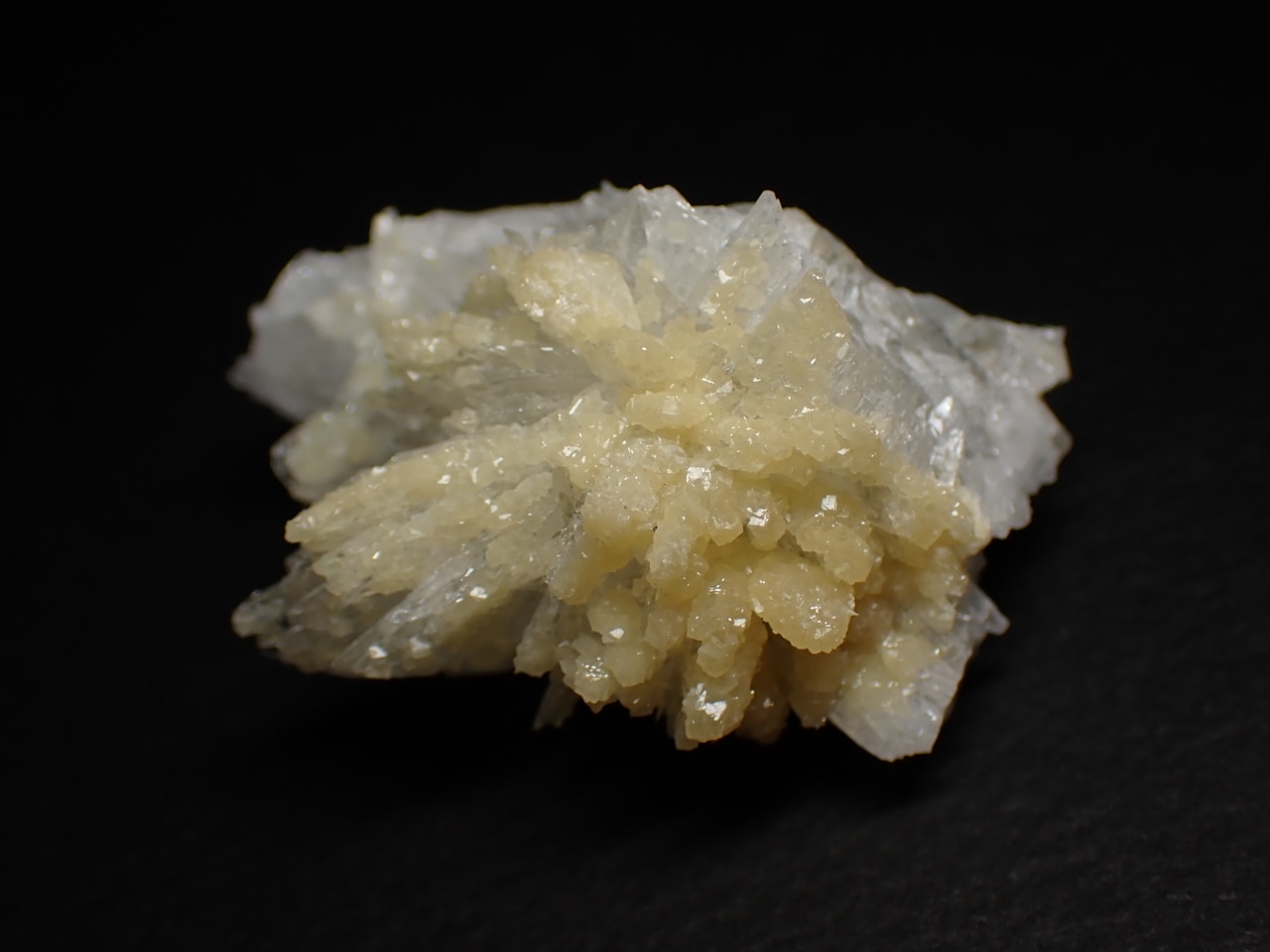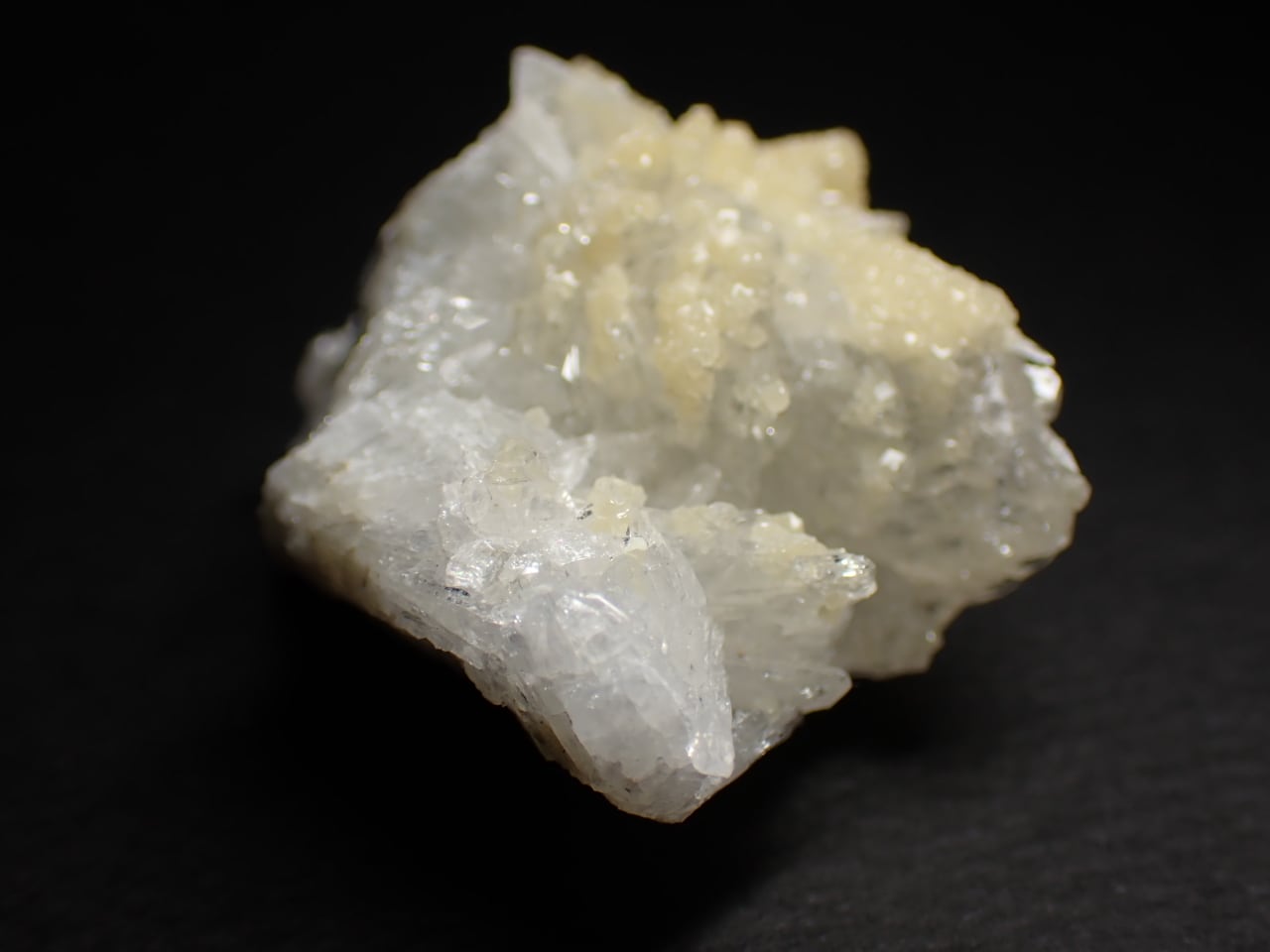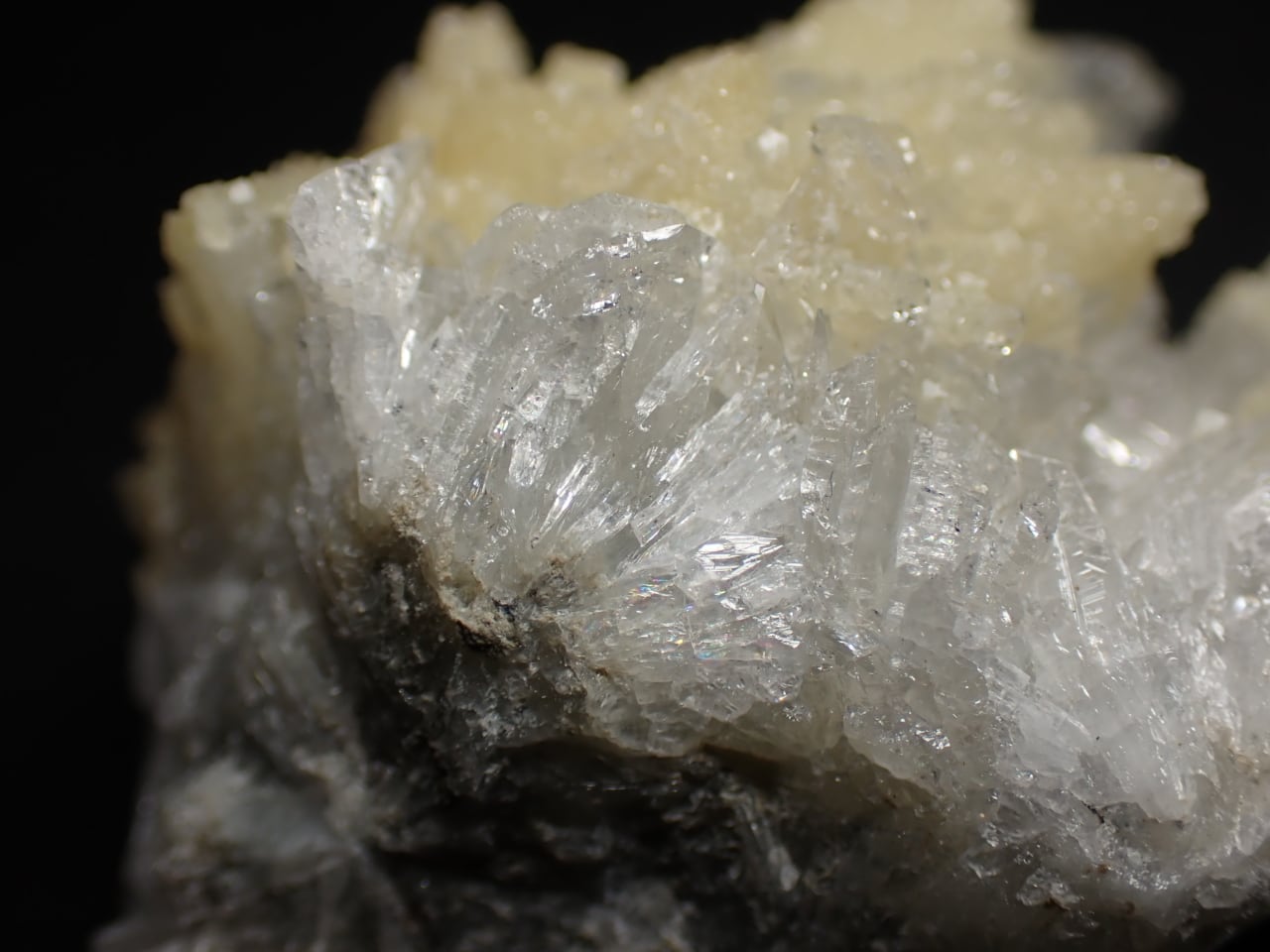 黄色い鉱物はおそらくカルサイト(方解石)です。