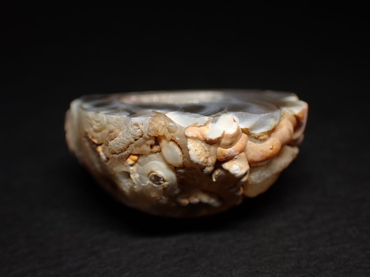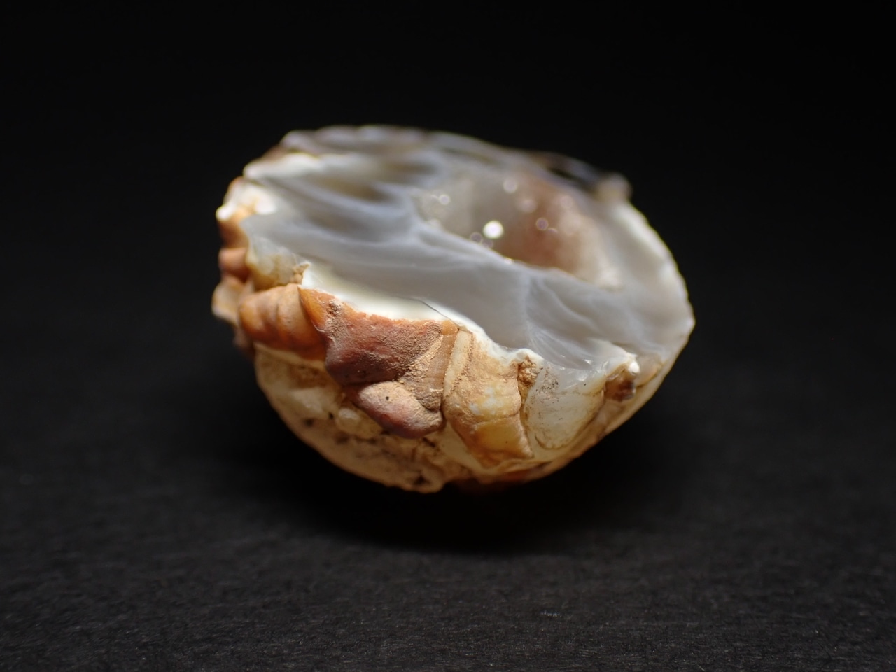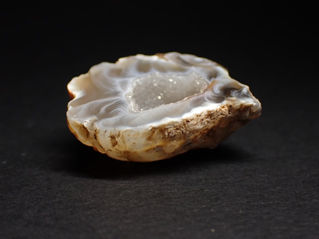 アゲートジオード(瑪瑙の晶洞)を半分に切断した標本です。