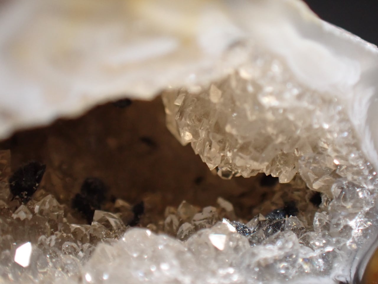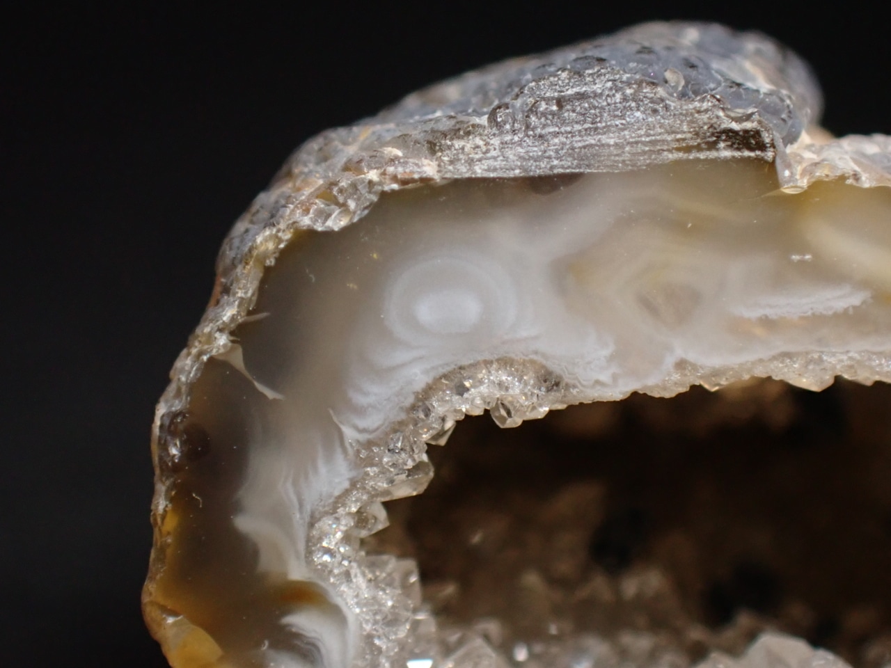 アゲートジオード(瑪瑙の晶洞)を半分に切断した標本です。