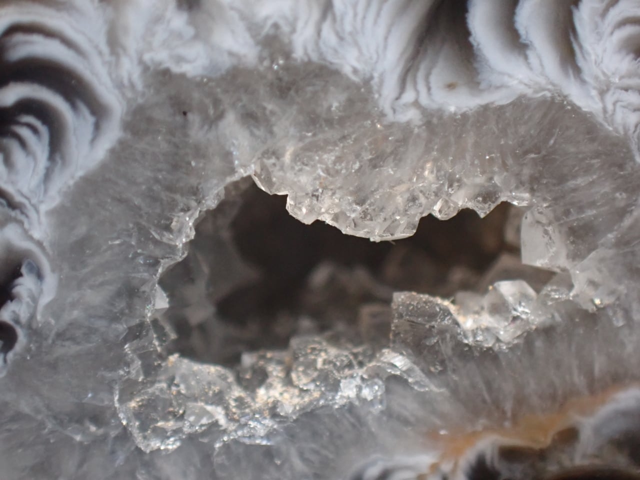 アゲートジオード(瑪瑙の晶洞)を半分に切断した標本です。