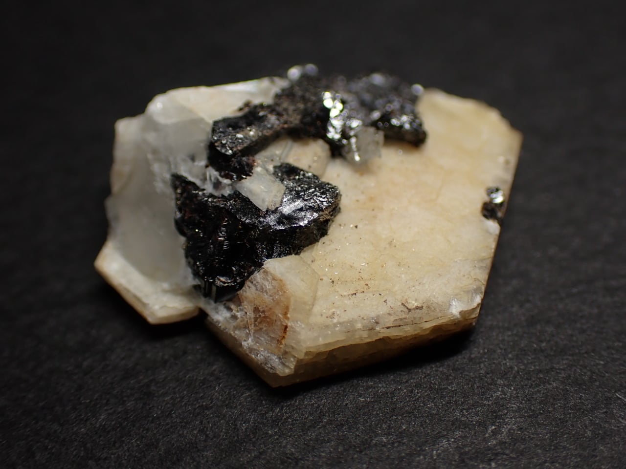 こちらは方解石(Calcite)と閃亜鉛鉱(Sphalerite)が共生しております。