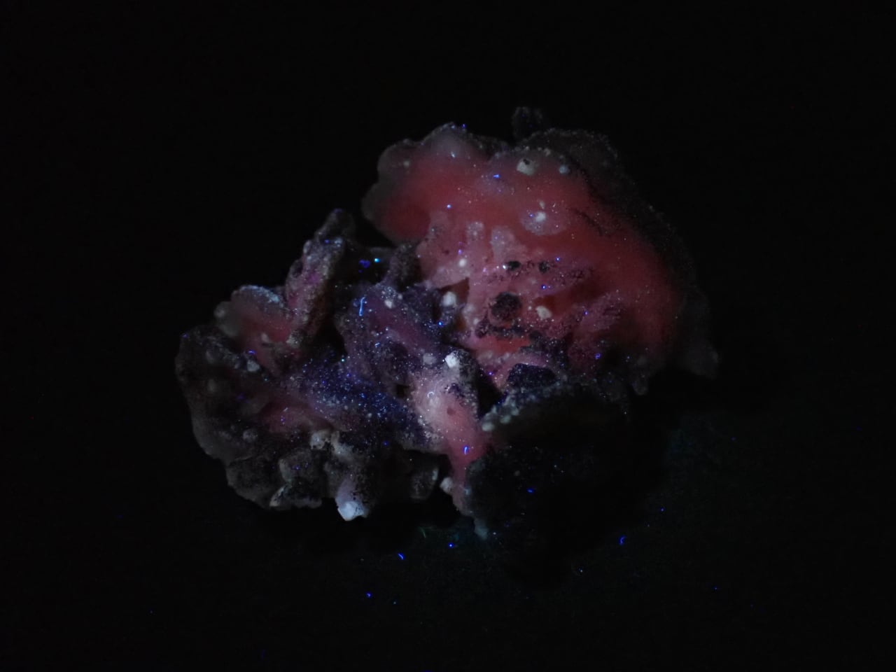 方解石(Calcite)の蛍光の撮影にハイパーUVライト(365nm)を使用しております。
