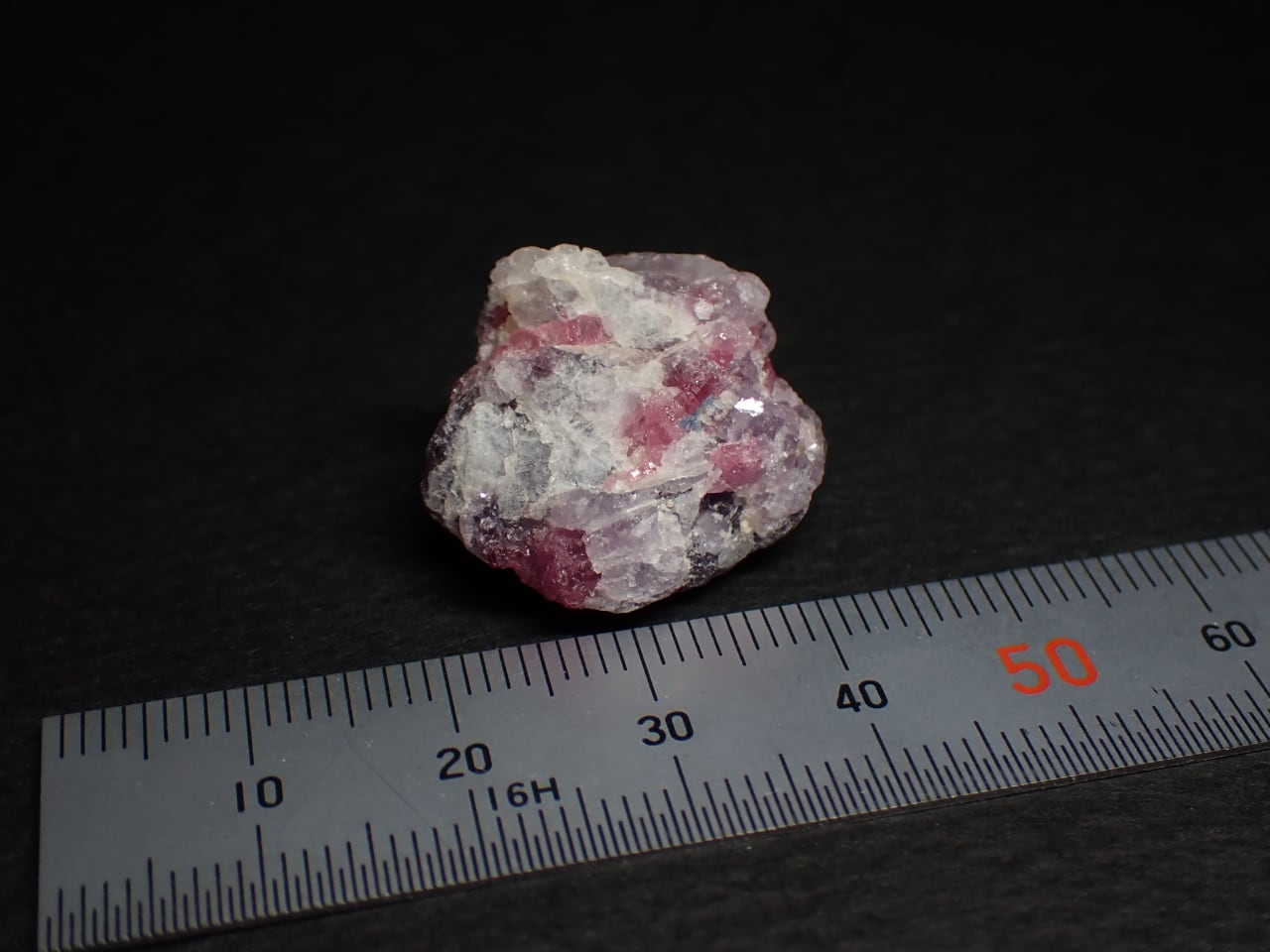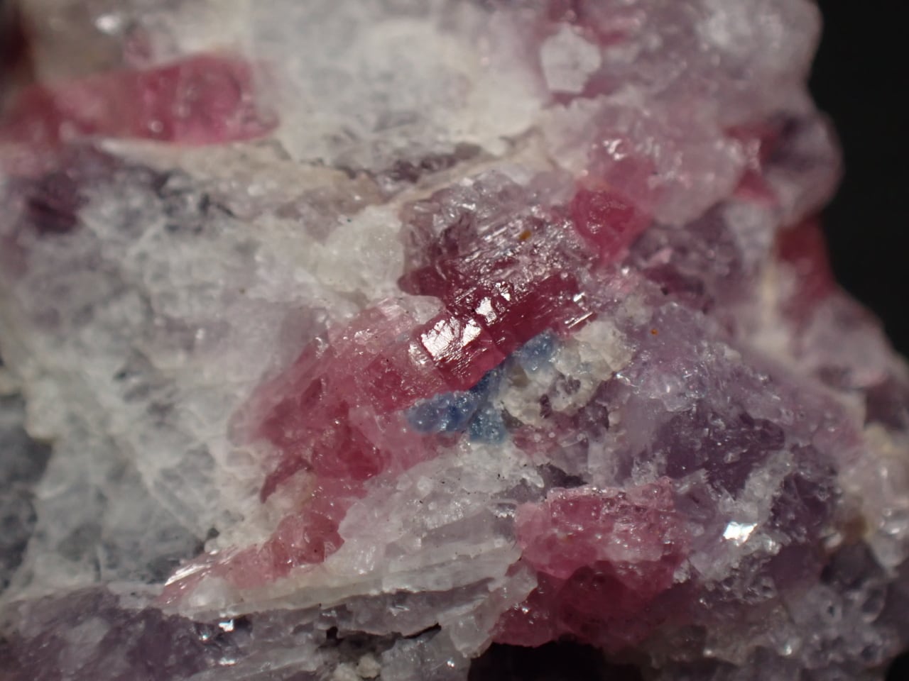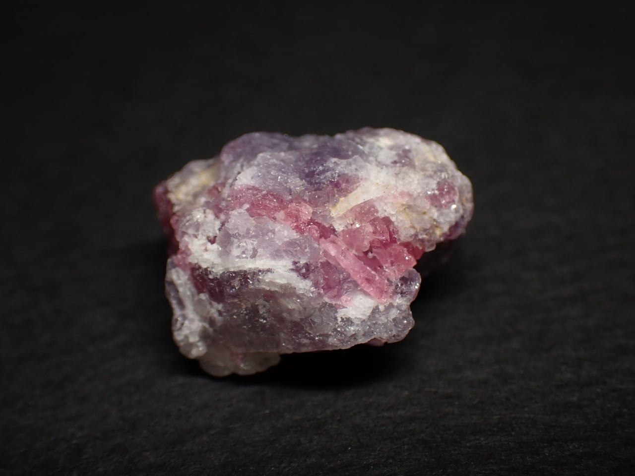 ピンク色の鉱物がエルバイト、紫色の鉱物がレピドライト(リチア雲母)です。