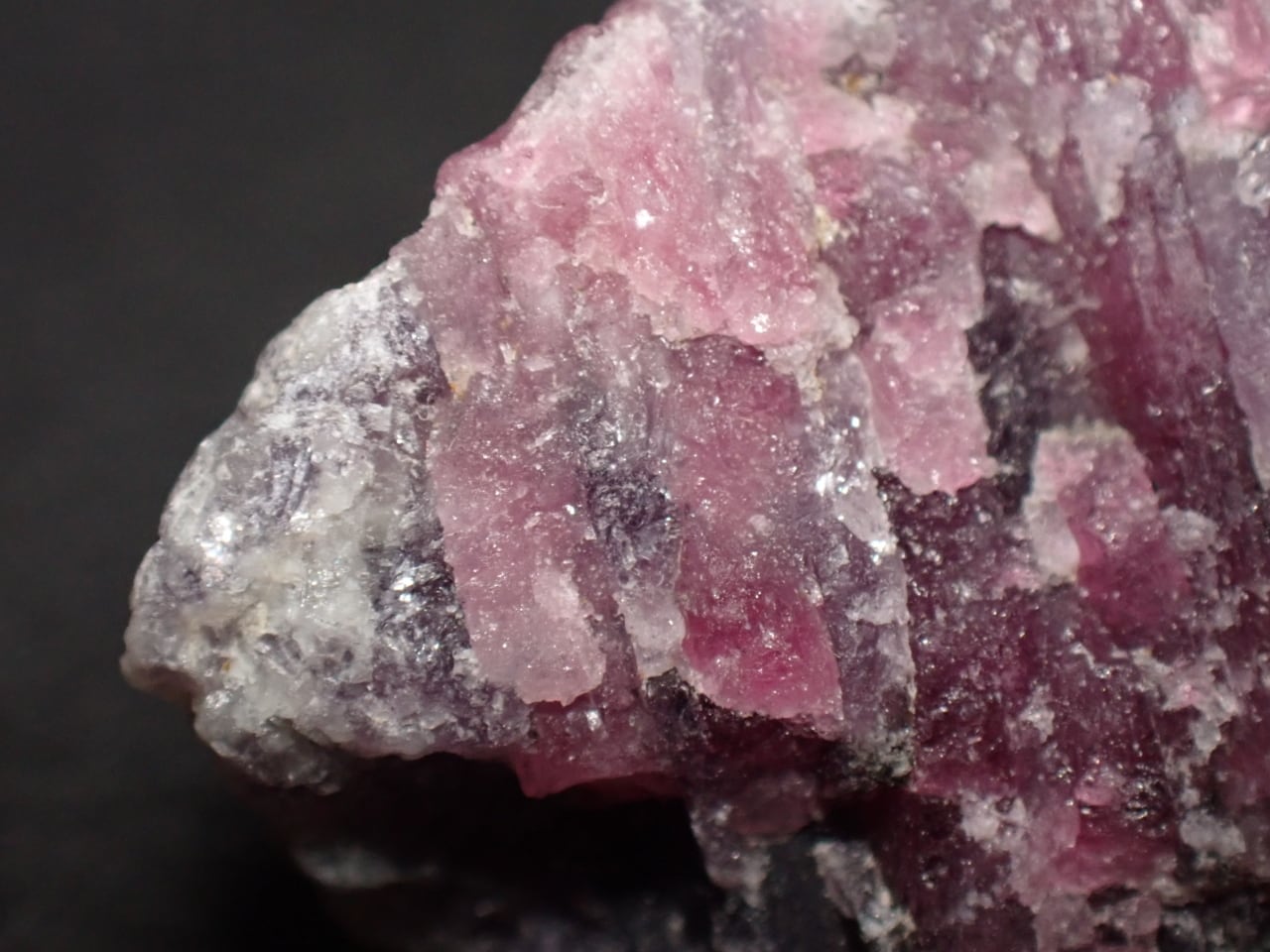 ピンク色の鉱物がエルバイト、紫色の鉱物がレピドライト(リチア雲母)です。