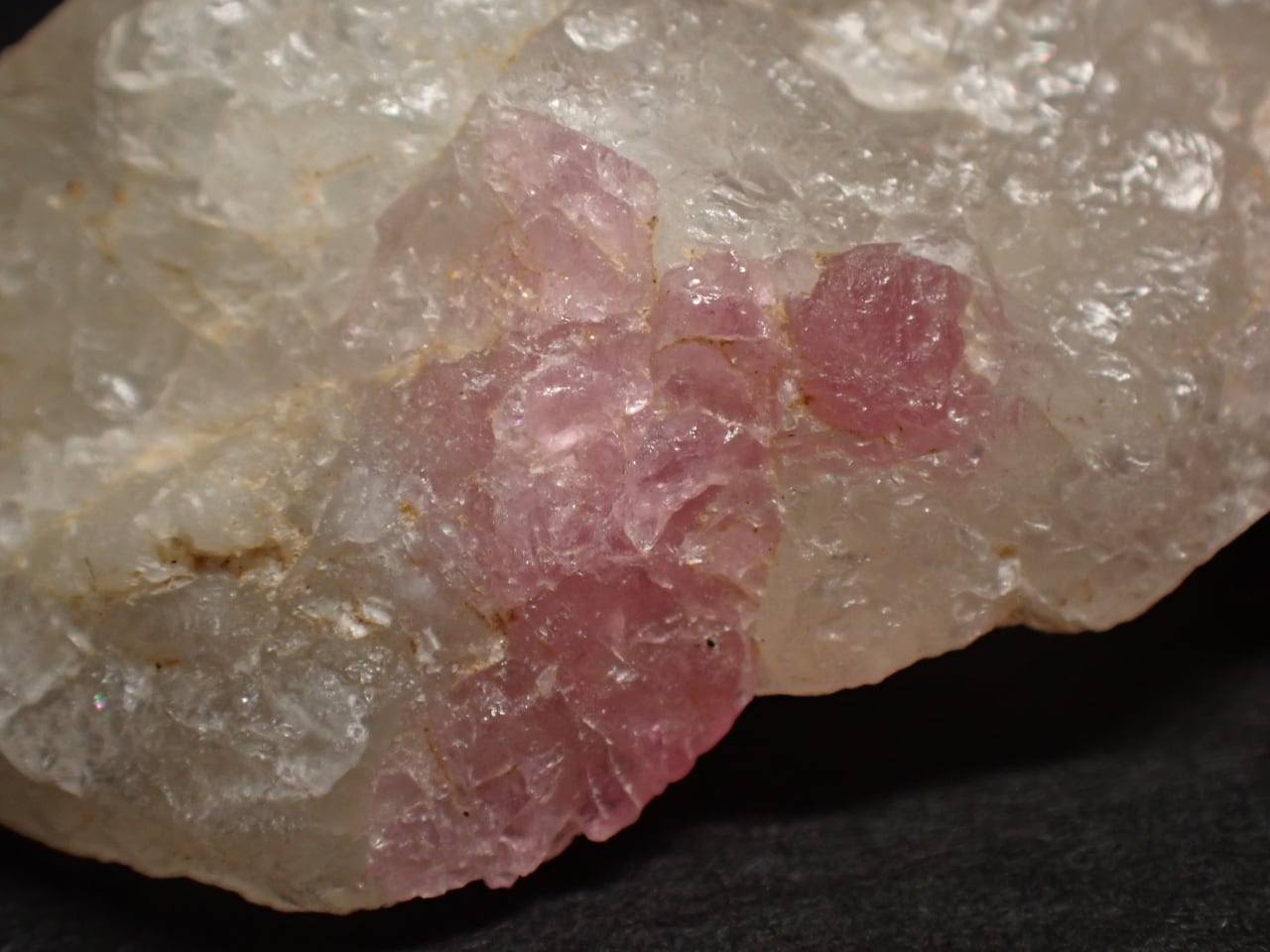 ピンク色の鉱物がエルバイト、白色の鉱物が石英です。