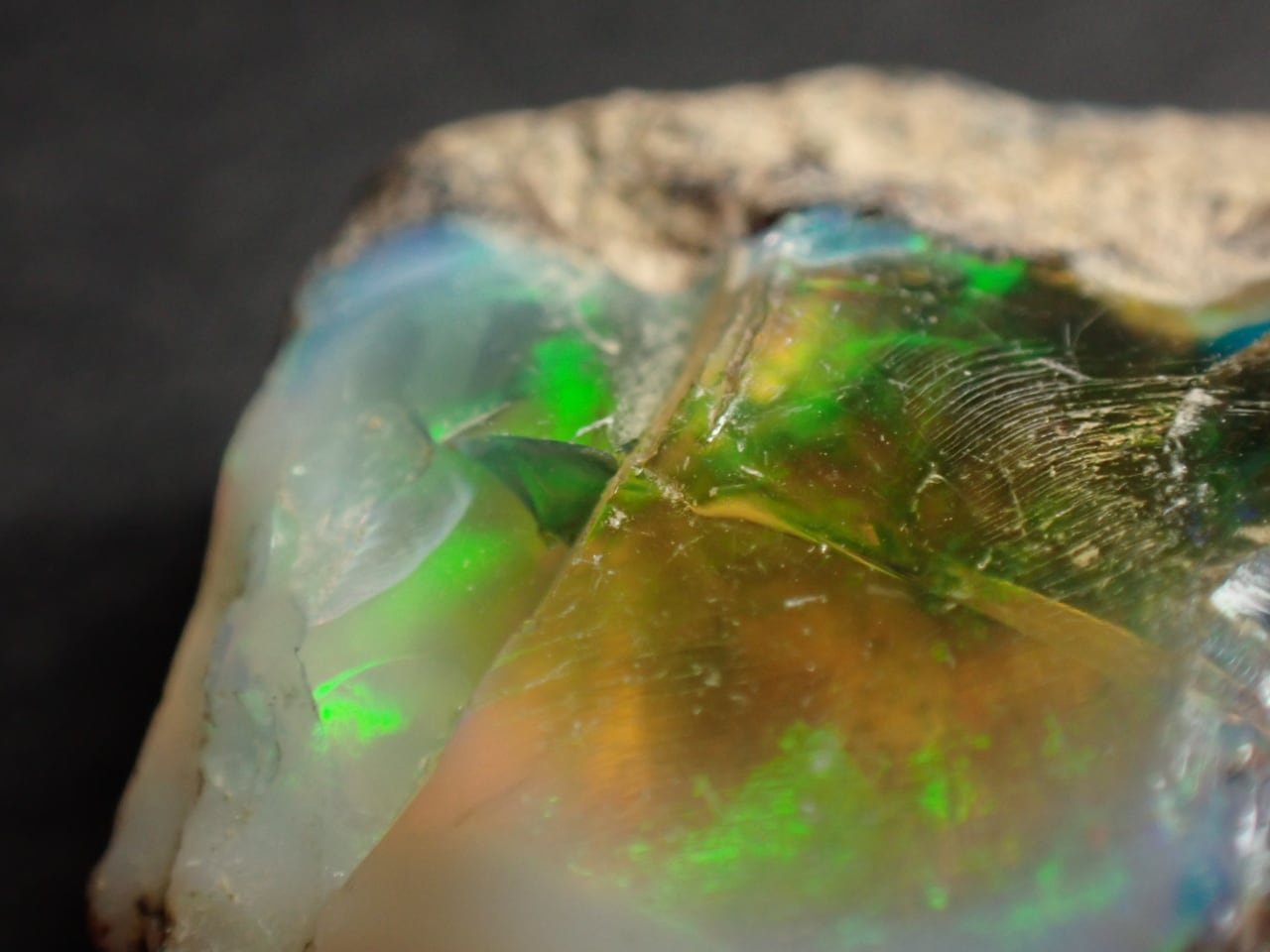 エチオピアオパールは吸水性が高く水に浸けると透明になるハイドロフェン効果が確認できます。