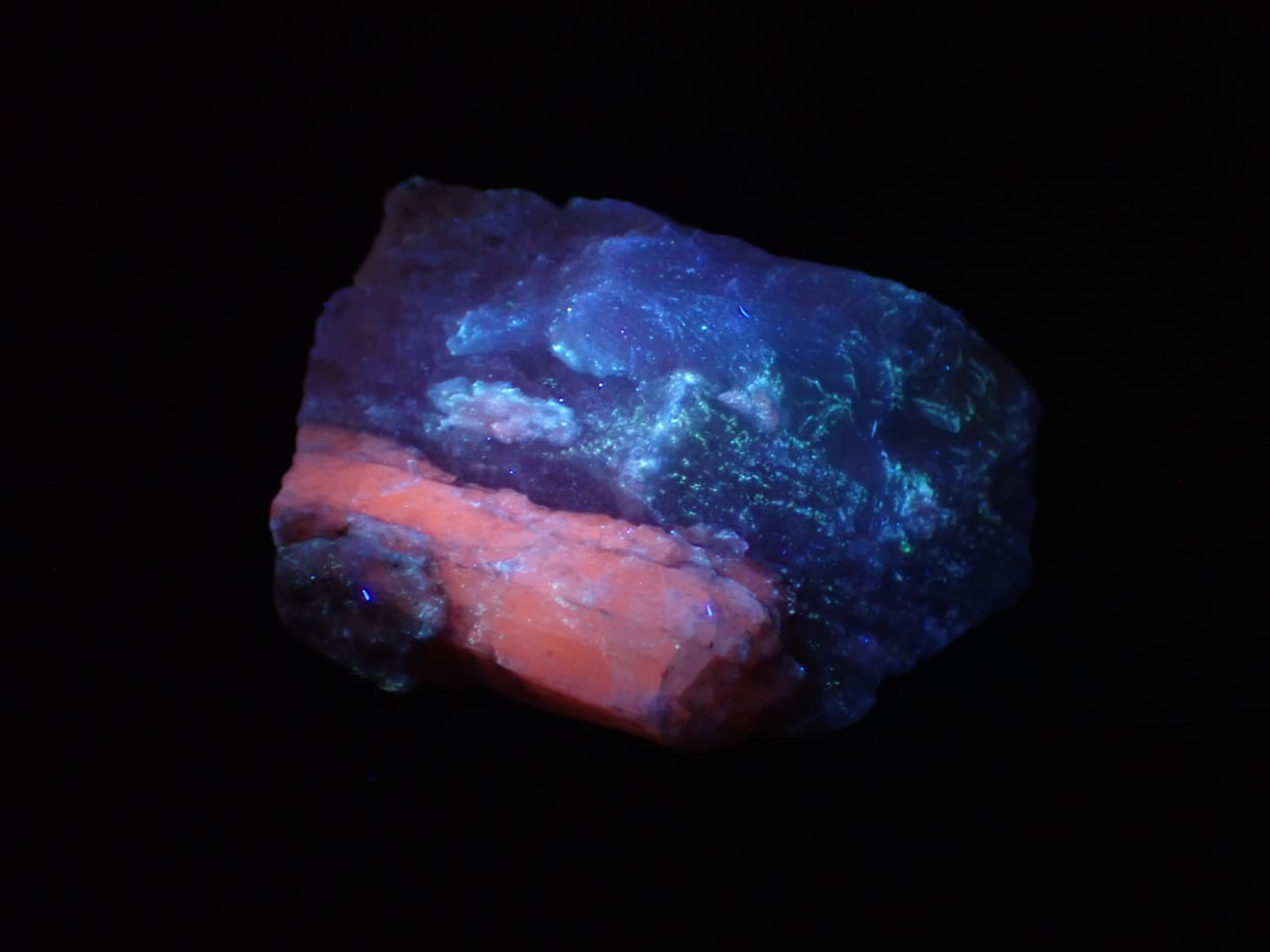 蛍光している鉱物がクンツァイト(リチア輝石)です。