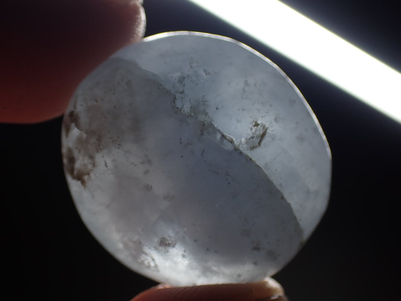 セレスタイト(天青石)は硬度が3〜3.5と柔らかい鉱物です。保管の際は他の鉱物などに当たらない様ご注意ください。