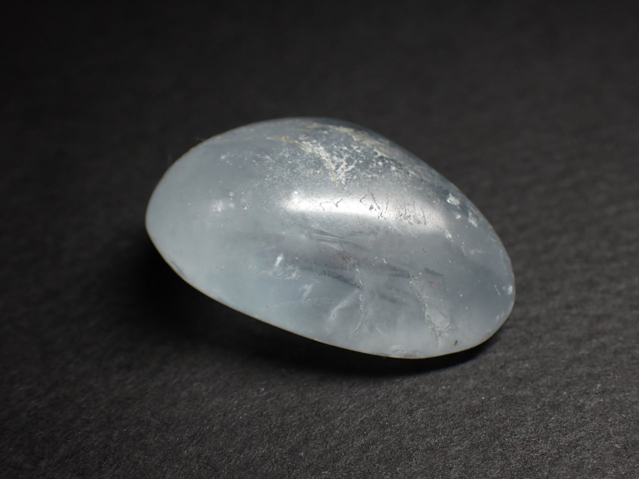 セレスタイト(天青石)は硬度が3〜3.5と柔らかい鉱物です。保管の際は他の鉱物などに当たらない様ご注意ください。