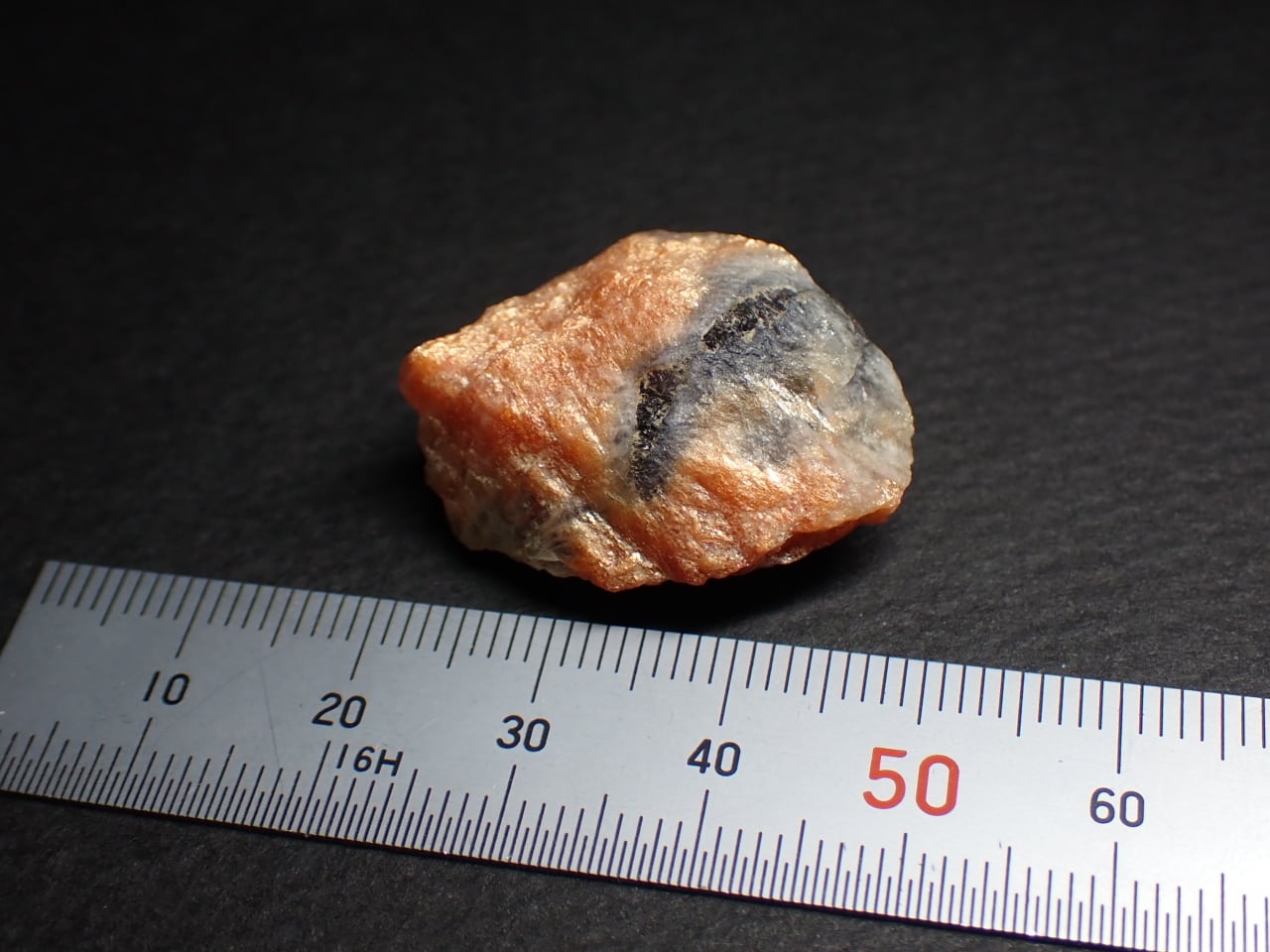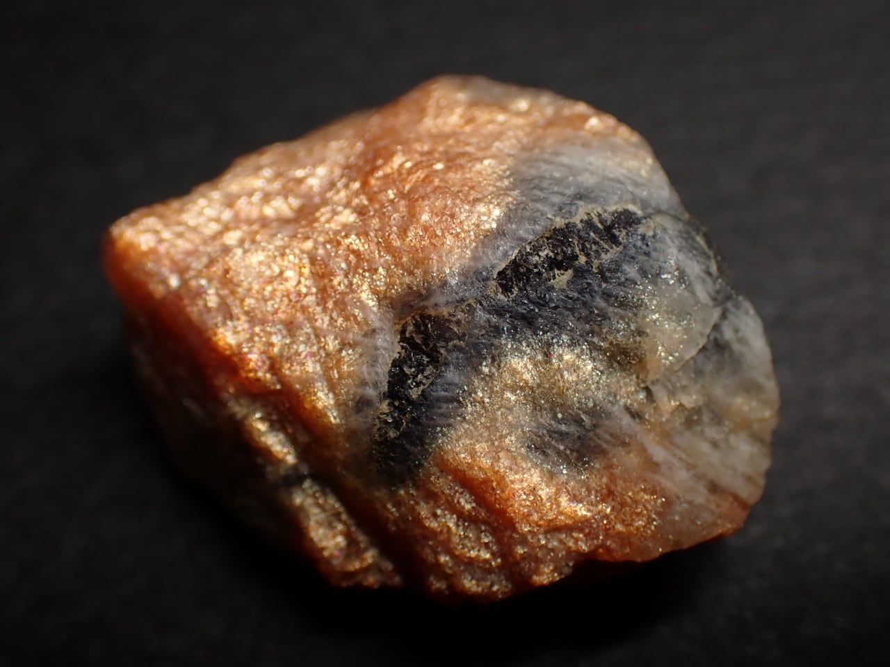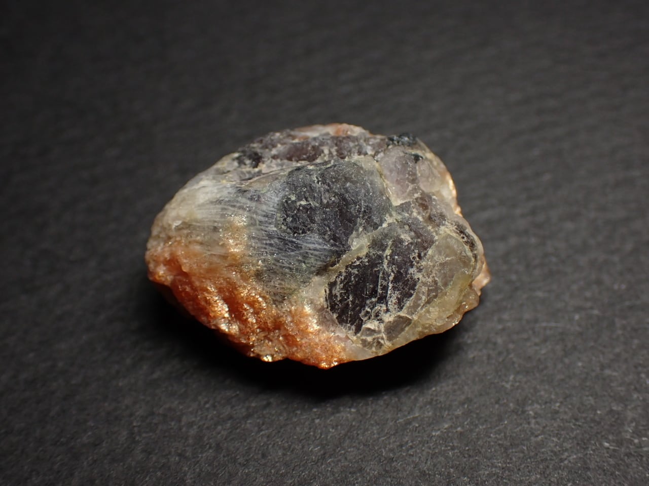 アイオライト(菫青石)とサンストーン(日長石)がはっきり分かれた原石です。