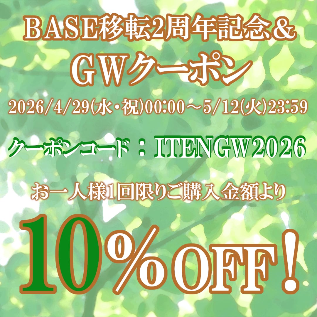4/29(水・祝)0:00から2週間!【BASE移転2周年記念&GWクーポン】