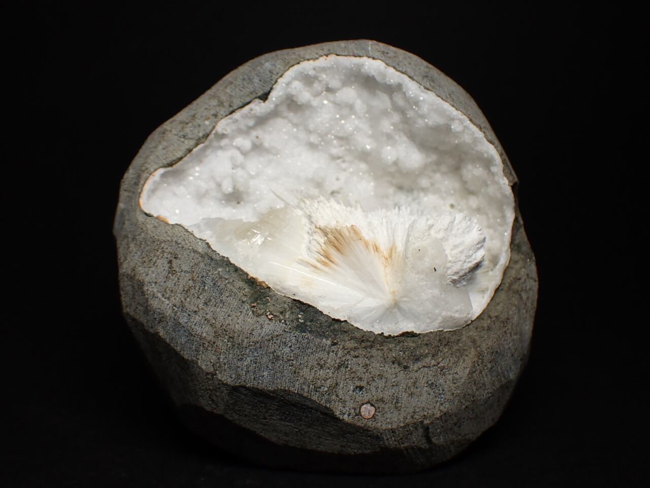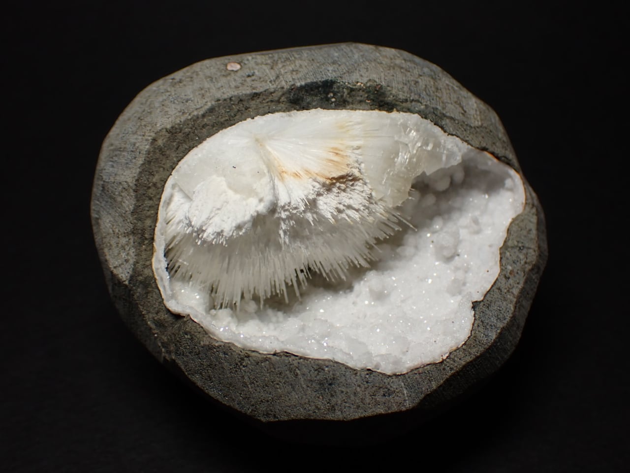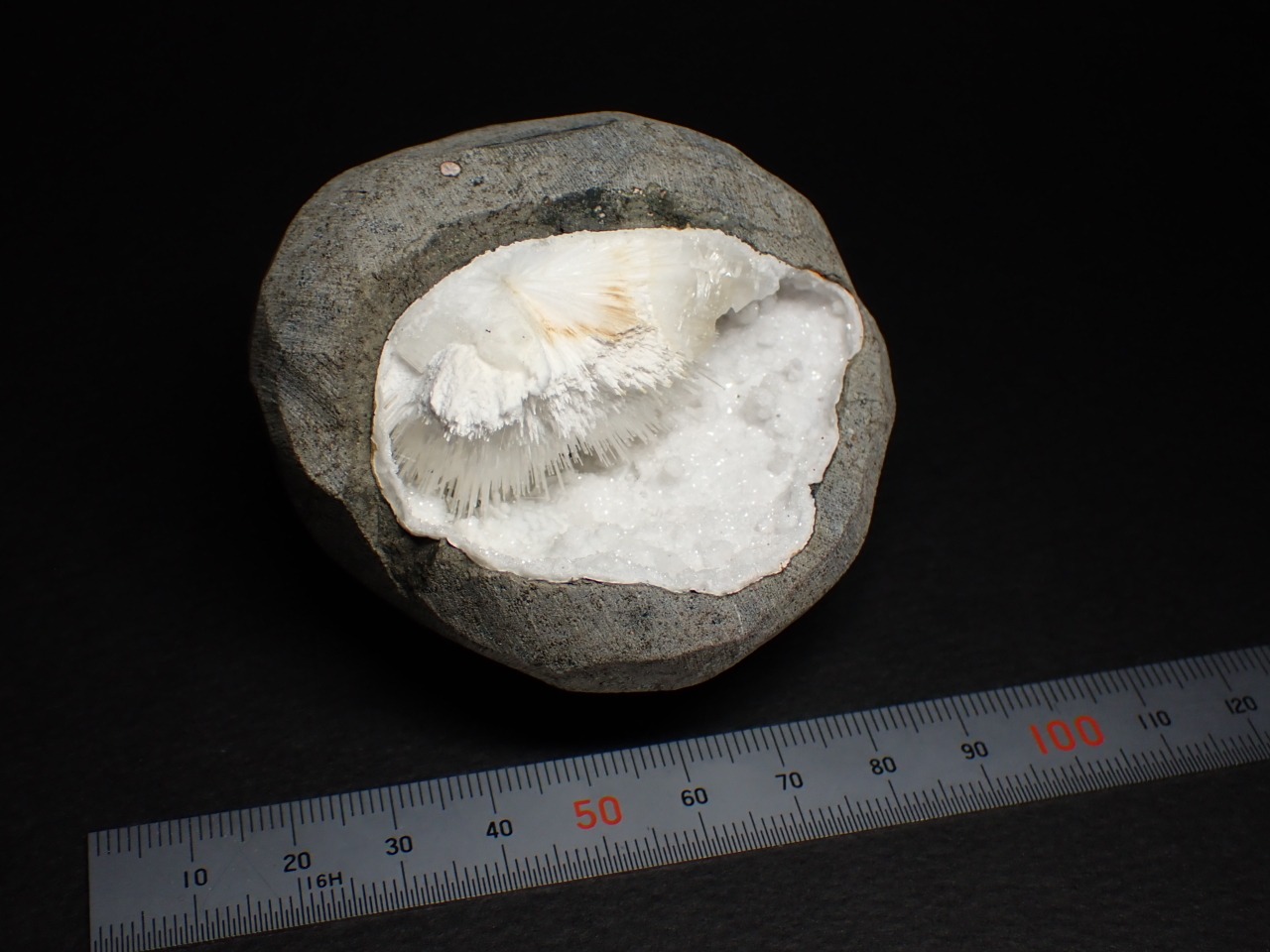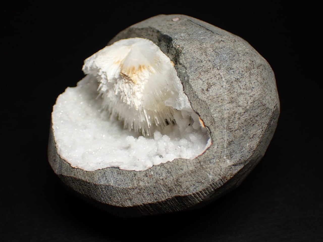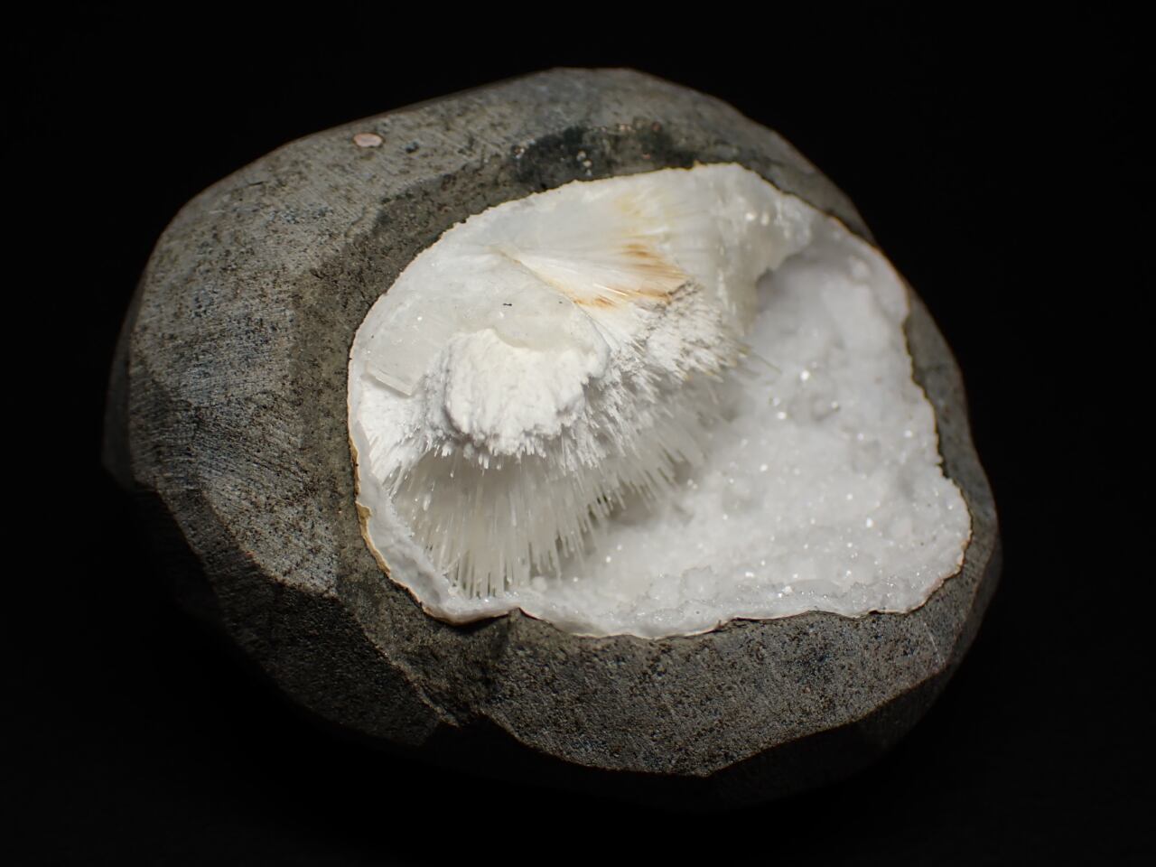 細い針状や放射状の結晶が特徴です。