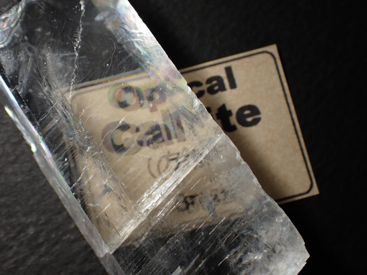 透明なカルサイトならではの複屈折が確認できます。