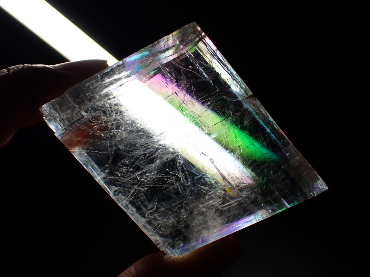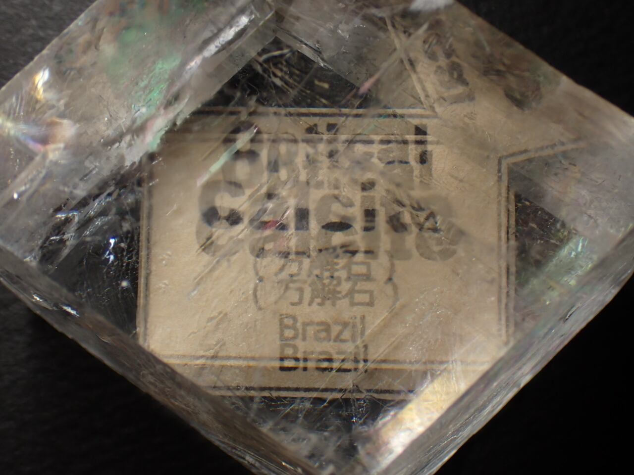 透明なカルサイトならではの複屈折が確認できます。