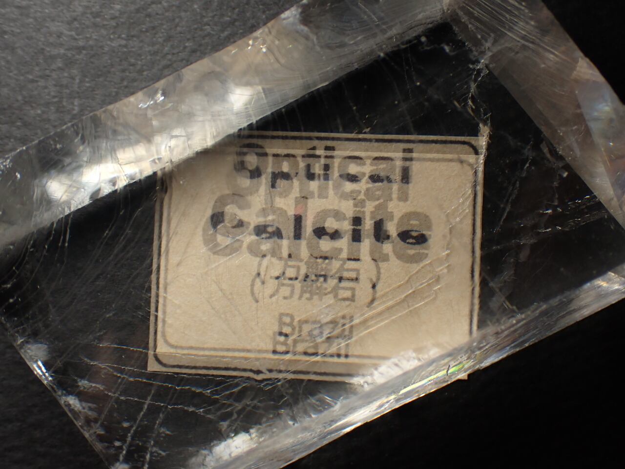 透明なカルサイトならではの複屈折が確認できます。