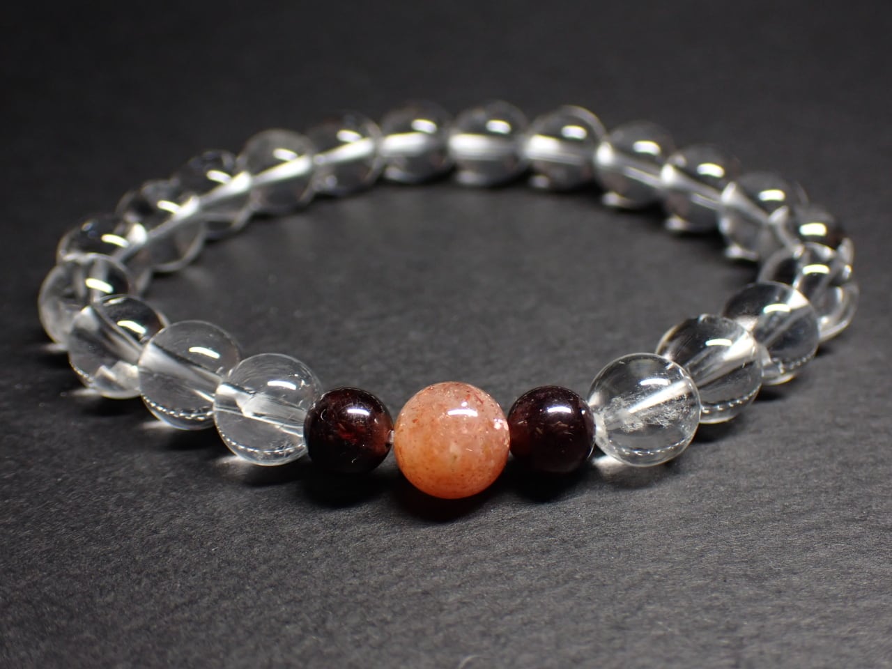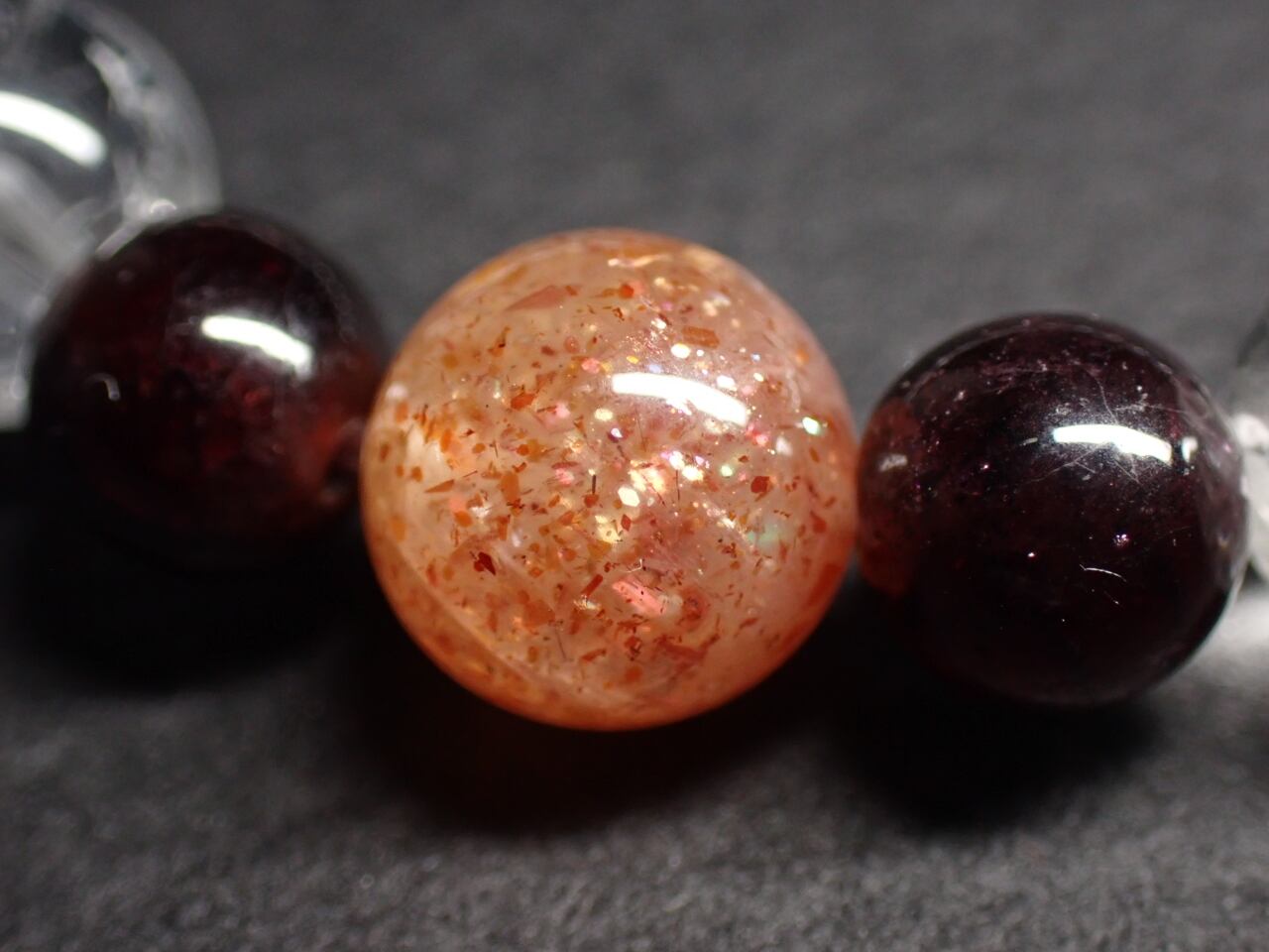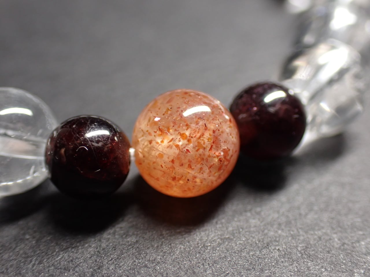 使用天然石…天然水晶8mmx20個 サンストーン8mmx1個 ガーネット6mmx2個